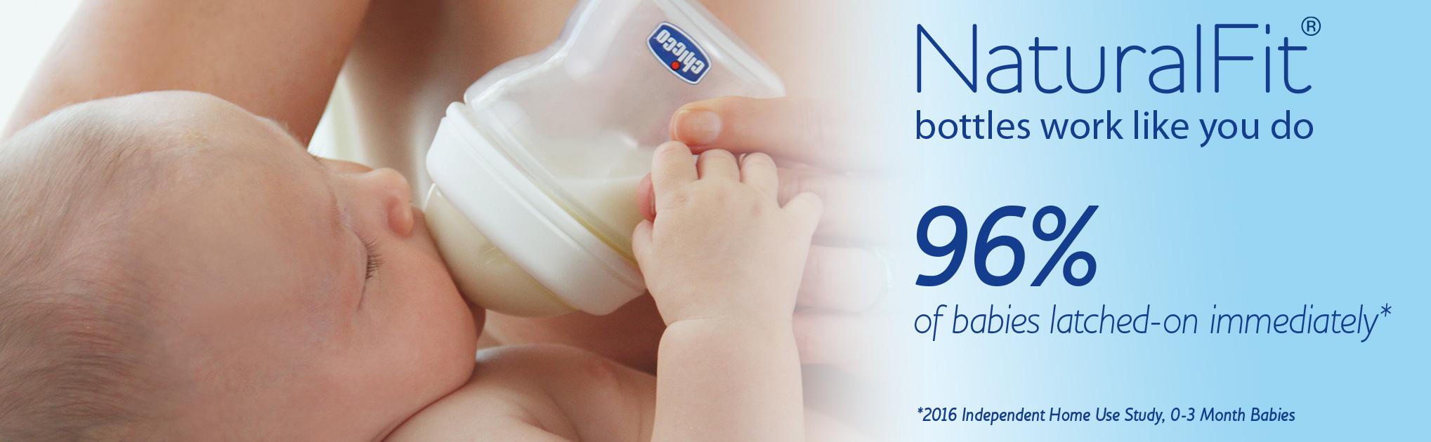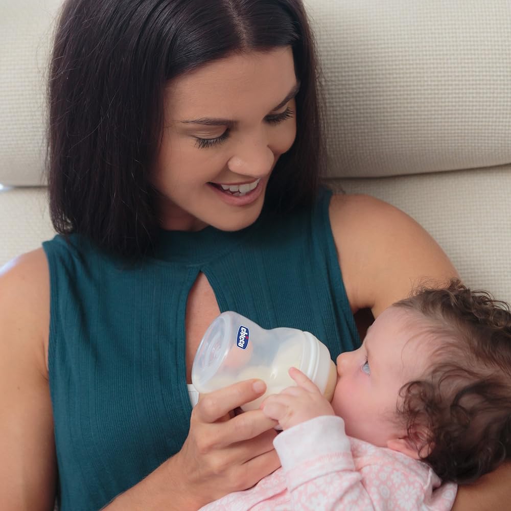 Nestling up with baby when feeding is a beautiful bonding moment, and also how parents learn which baby bottle shape, flow and size is best for their unique little one. Whether a supplement to breastfeeding or an alternative, Chicco NaturalFit anti-colic Baby Bottles mimic breastfeeding - not only in how the nipple feels, but also in how the nipple flows.