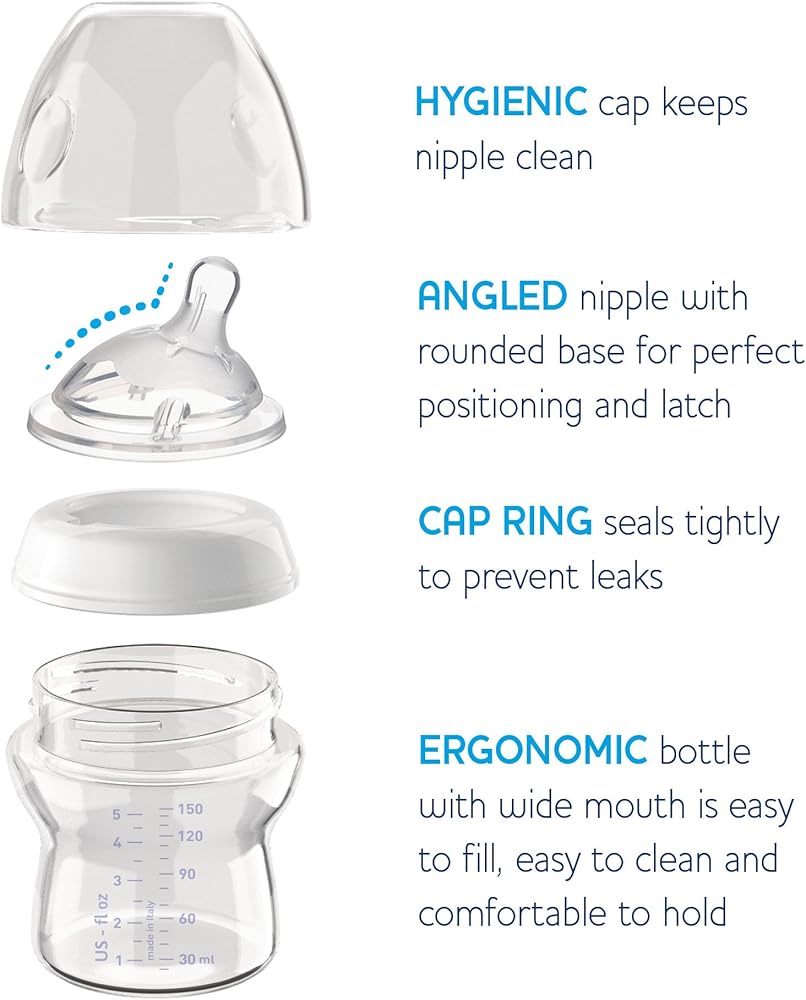 Made from high-quality and durable materials, our easy-to-hold baby bottle shape and innovative angled nipples nurture a perfect latch, natural cradle hold and ideal bottle feeding position.