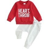 Toddler Baby Boys Valentine's Day Outfits Crewneck Long Sleeve Sweatshirt Tops Pullover and Pants Kids Clothes 0-1T-2T-3T-4T