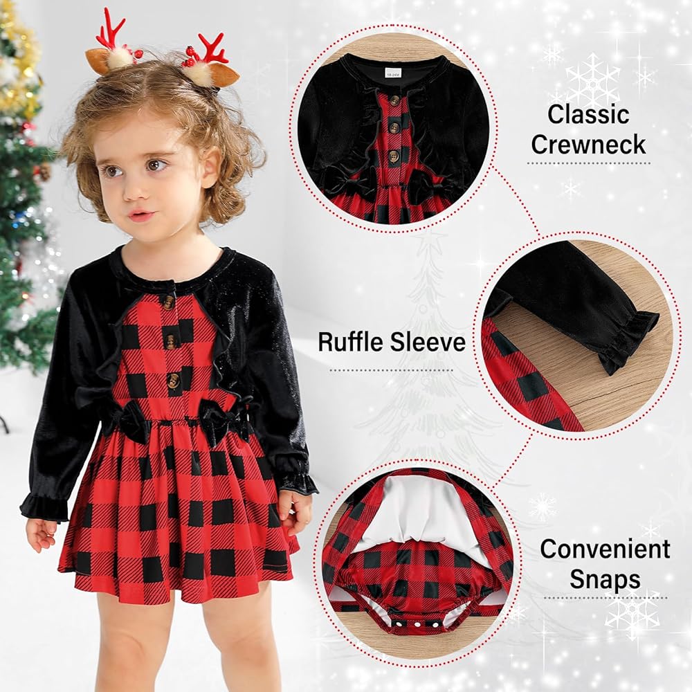 المناسبات: زي عيد الميلاد هذا مثالي لحفلات الكريسماس، وعيد الشكر، وصور العطلات، والكريسماس الأول، وعشية عيد الميلاد، والارتداء اليومي في الشتاء وما إلى ذلك. كما أنه هدية رائعة للابنة أو ابنة الأخ أو الحفيدة.