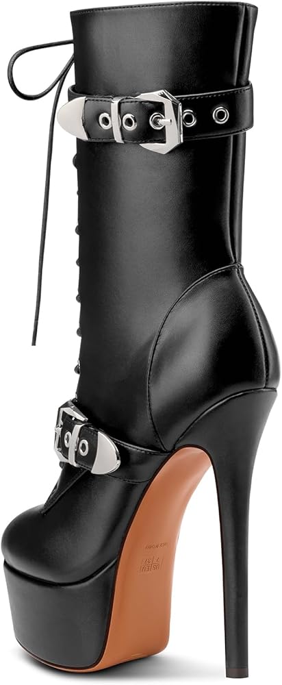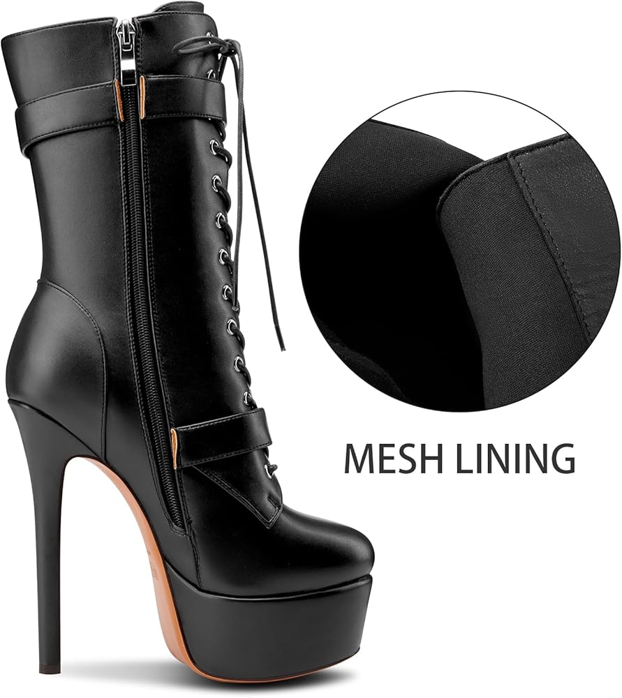 - هذه الأحذية النسائية ذات الكعب العالي والكعب العالي والمقدمة المستديرة والكاحل مثالية لإضفاء مظهر جريء على الموضة.