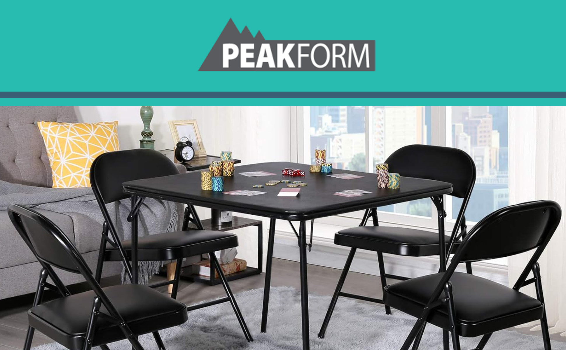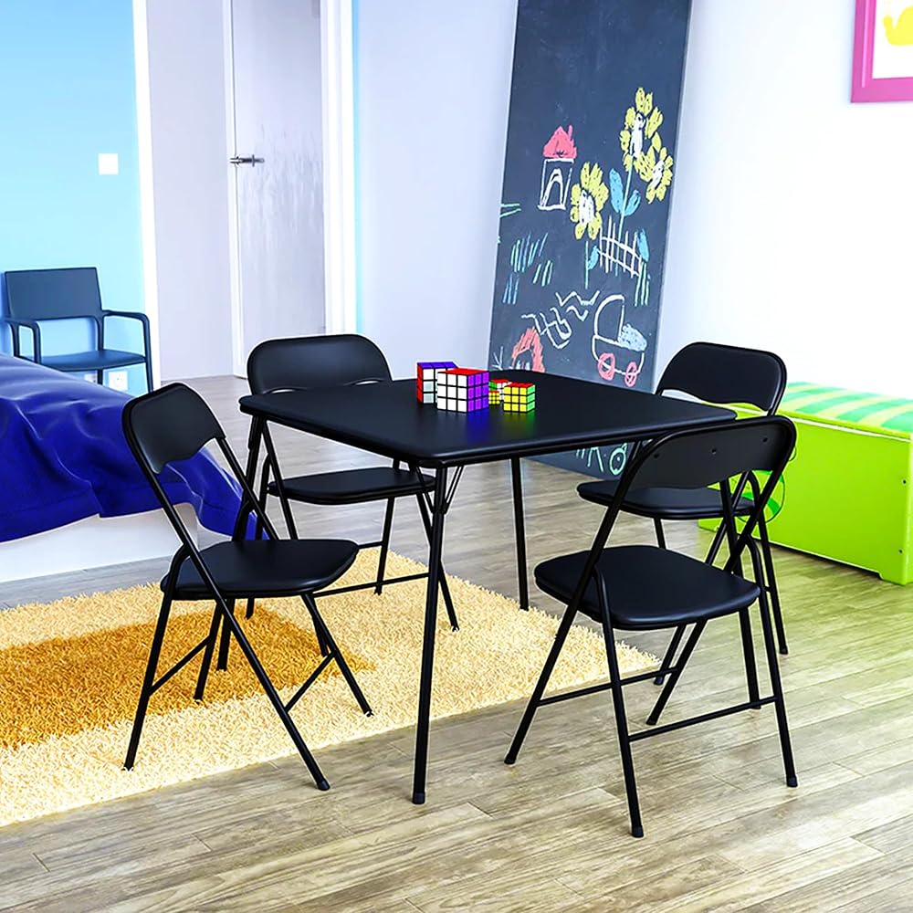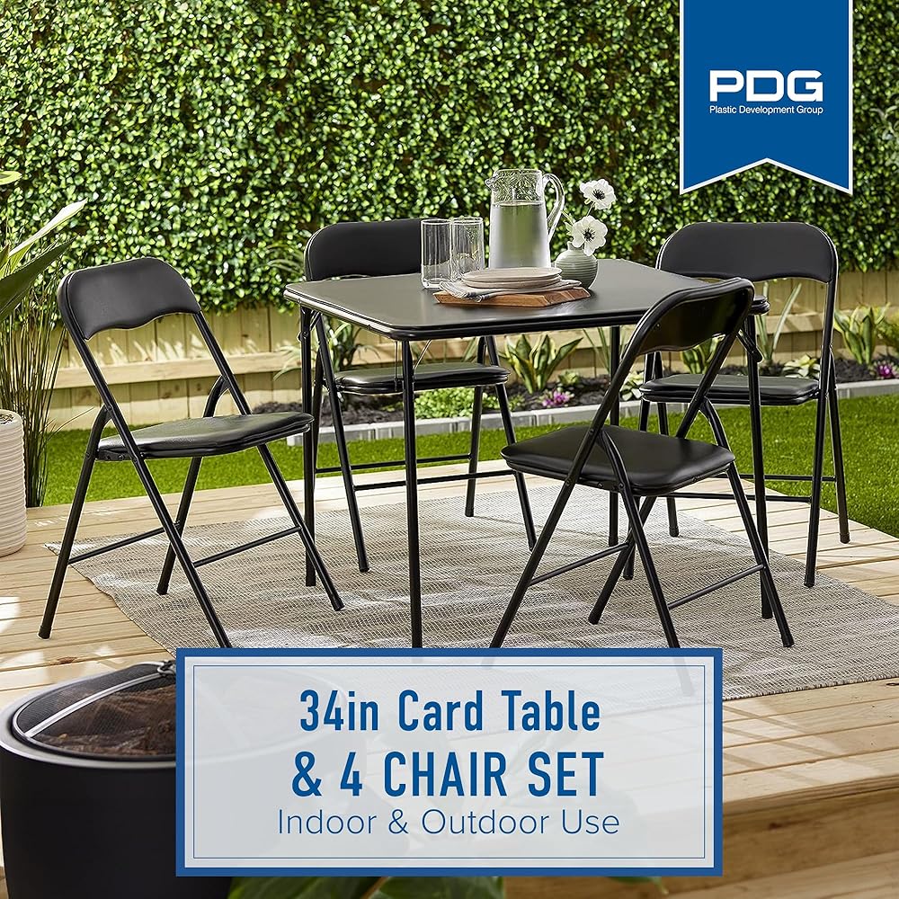 مجموعة كاملة مكونة من 5 قطع مع طاولة بطاقات مقاس 34 × 34 بوصة و4 كراسي قابلة للطي للاستخدام الداخلي أو الخارجي، وهي مثالية للألعاب والتجمعات مع زيادة المساحة وإمكانيات الجلوس