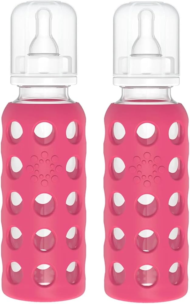 Lifefactory Glass Baby Bottles with Silicone Protection - 2-PACK, 9 oz Bottles, Grape