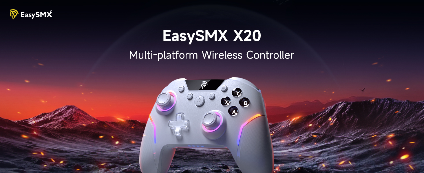 وحدة تحكم الألعاب EasySMX X20 - إضاءة خلفية RGB، مشغلات ميكانيكية مزدوجة، عصا القاعة بمرحلتين، معدل الاقتراع 1000 هرتز، جيروسكوبي 6 محاور على الكمبيوتر الشخصي والمحول، متوافق مع منصات متعددة