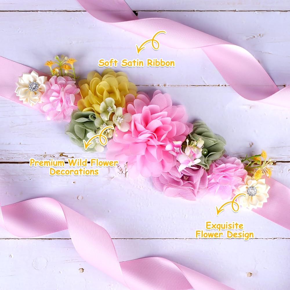 Easy To Use: The spring wildflower maternity belt is long, and is easy to tie around the belly, and make a big bowknot in the back of the dress. The sash belt set is perfect for wildflower theme baby shower, maternity photo shoot, and gender reveal.