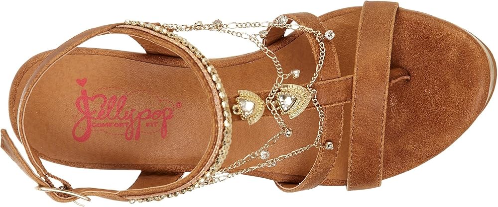 Jellypop offers comfort and style for your everyday lifestyle. These sandals feature an open toe, jewel accents, and adjustable strap. Heel height is approximately 1 1/2 .