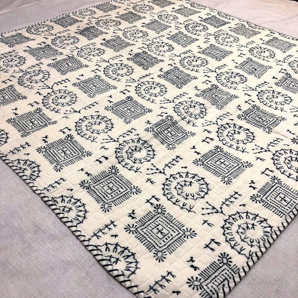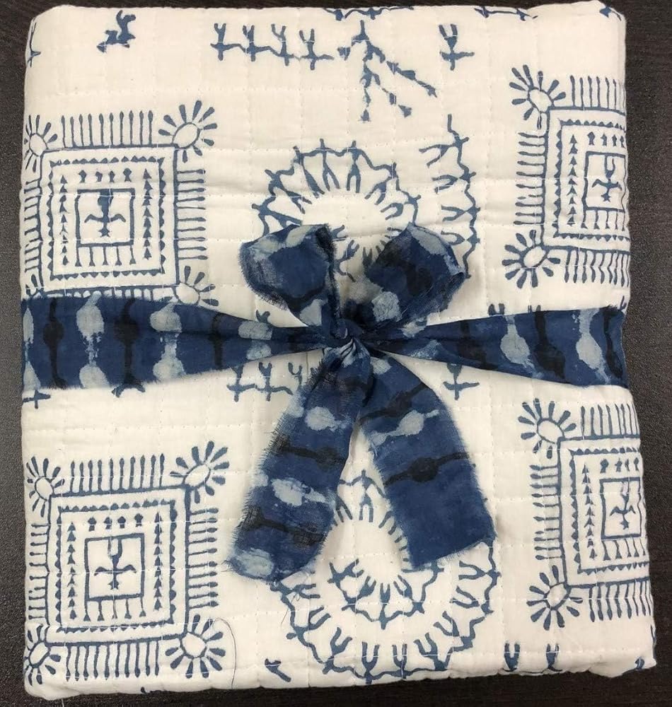 لحاف قطن 100% من Trade Star مطبوع عليه كتلة يدوية لحاف أطفال ذو وجهين، تصميم هندي مبطن فائق النعومة، بطانية أطفال مصنوعة يدويًا، بطانية بطانية عرقية للأطفال الصغار (نمط 5)
