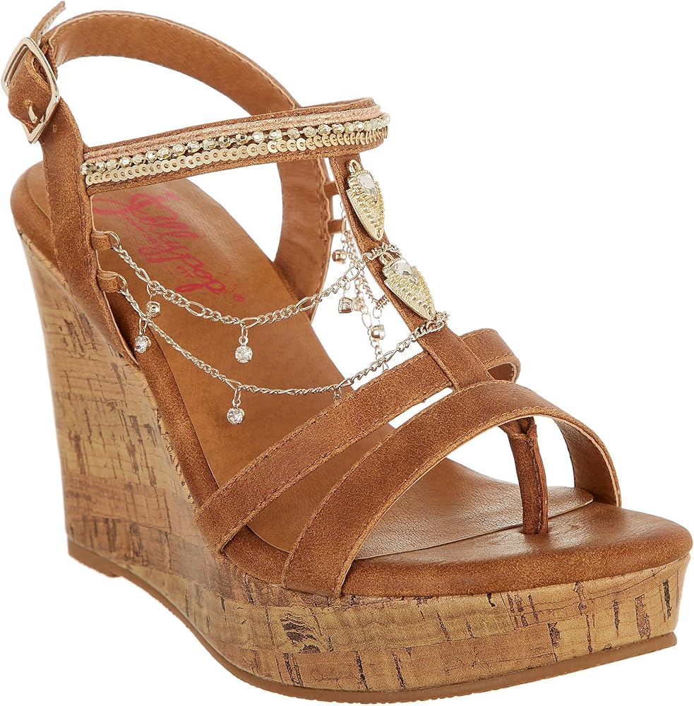 Jellypop offers comfort and style for your everyday lifestyle. These sandals feature an open toe, jewel accents, and adjustable strap. Heel height is approximately 1 1/2 .