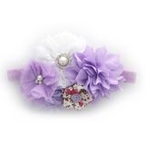 Stunning cluster of fabric flowers on a soft and stretchy fold over elastic headband. Rhinestone and bead accents on a mix of shabby frayed fabric and tulle flowers. This headband is perfect for vintage photography accessories and other special occasions. Size: newborn baby through 8mos. (13.5" - 15.5" head circumference) *Please keep in mind that every child is different and head circumferences can vary greatly. If ordering for an older infant, please measure your child's head to ensure these headbands will be a good fit. This headband will fit most newborns, but may be a bit large for some.