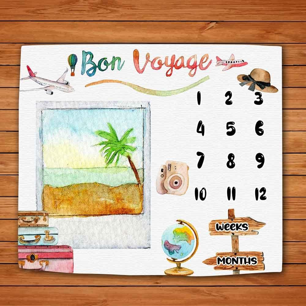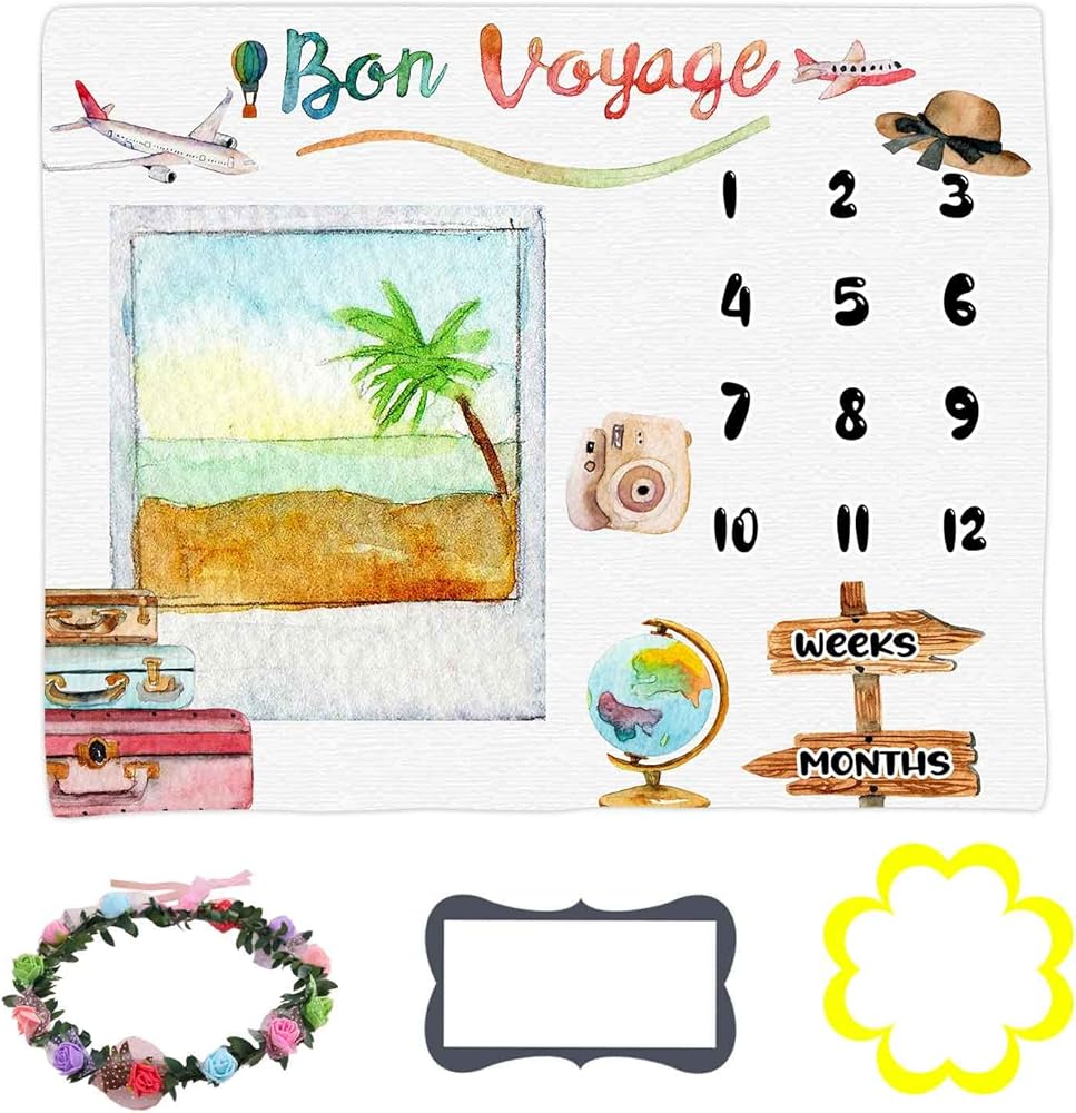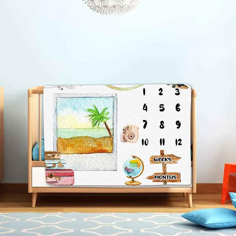 بطانية عمر الطفل، خلفية صورة السفر، بطانية معلم شهرية للطفل، بطانية مخطط نمو الطفل، بطانية قماط استحمام الطفل مقاس 48 × 40 بوصة BTZYLY116