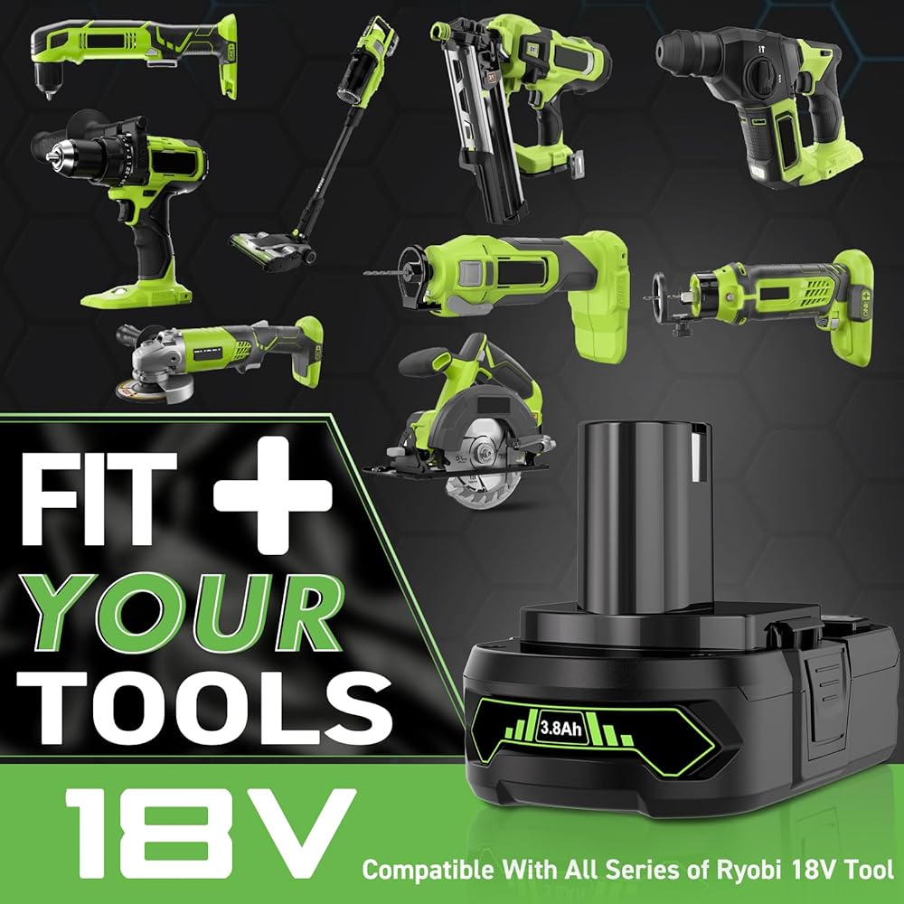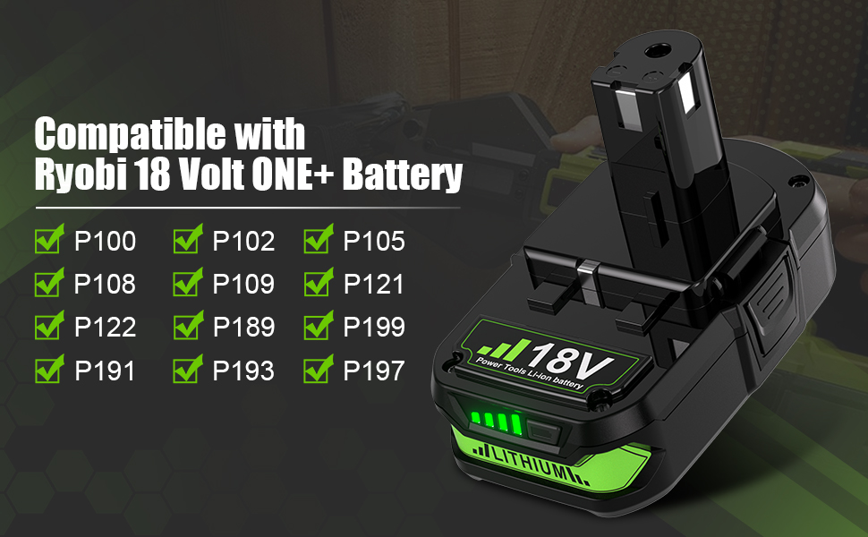 • 🔋التوافق: متوافق مع Ryobi P102، P103، P104، P105، P107، P108، P109 ويناسب جميع أدوات الطاقة اللاسلكية لنظام Ryobi 18V ONE+. (ملاحظة: لا يناسب منشار ryobi اللاسلكي P551، راديو ryobi 18 فولت، المصباح على سبيل المثال، ryobi P742 ryobi P746).