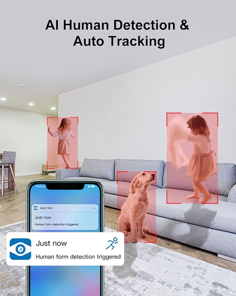 [الكشف الذكي عن الإنسان وتتبع الحركة] راقب حركة الحيوانات الأليفة والأشخاص والمزيد بدقة متناهية. احصل على تنبيهات في الوقت الفعلي من خلال تطبيق INSEECam، المجهز بقدرات متقدمة للتعرف البشري. مثالية لمراقبة غرف المعيشة أو غرف النوم أو المساحات المكتبية
