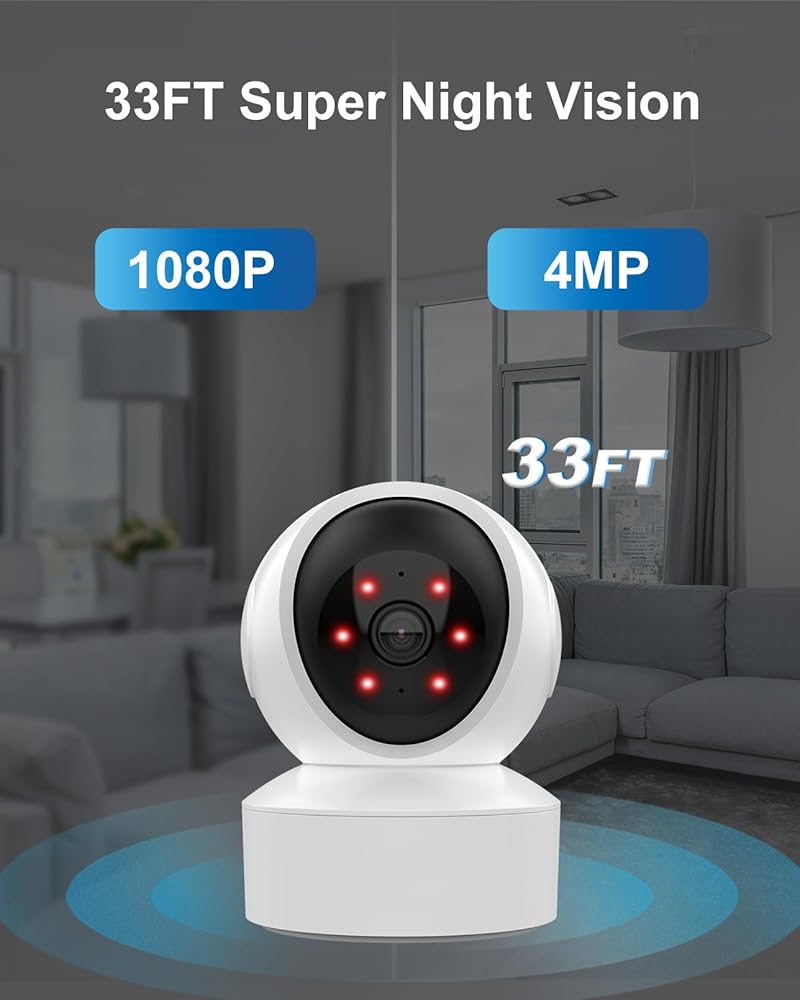 [دقة 4MP HD ومحادثة ثنائية الاتجاه] استمتع بمراقبة 2K فائقة الوضوح مع كاميرا WiFi الداخلية بدقة 4MP HD. تتميز بمقلاة 348 درجة، وإمالة 70 درجة، وتكبير/تصغير 5x، وتوفر تغطية كاملة للحيوانات الأليفة والرضع وأمان المنزل. تساعد وظيفة التحدث ثنائية الاتجاه على تخفيف قلق الانفصال وتتيح التواصل في الوقت الفعلي مع الحيوانات الأليفة أو الأطفال أو أفراد الأسرة المسنين