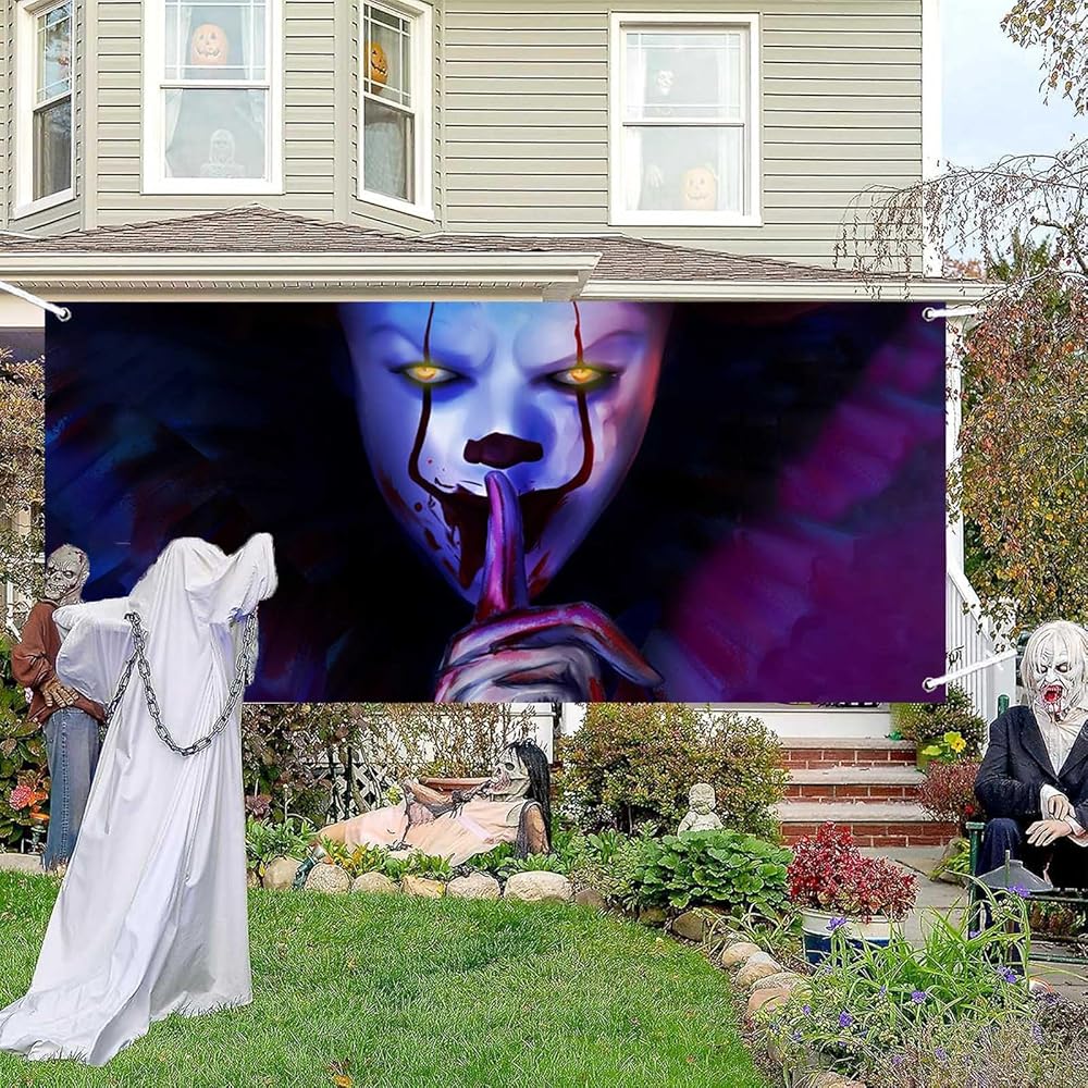 جوكر مهرج عيد الهالوين راية خدعة أو علاج الرعب القاتل مخيف مخيف الإرهاب تكنولوجيا المعلومات موضوع ديكور لعيد الهالوين فيلم زينة عيد ميلاد لوازم حفلات الصور كشك الدعائم تفضل خلفية الخلفية