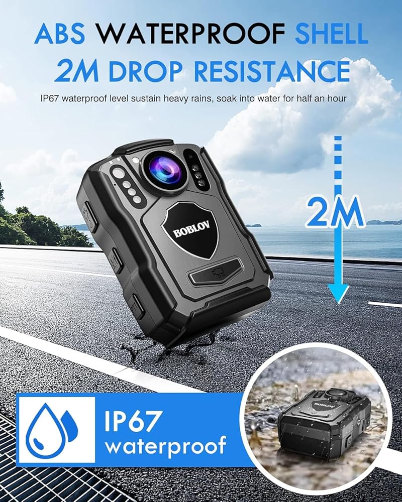 • 【مقاومة للماء IP67 ومضادة للسقوط 2 متر】تعتمد على غلاف ABS متين لكاميرا الجسم المقاومة للماء M5، فهي متينة ومقاومة للخدش. مستوى مقاومة الماء IP67 يتحمل الأمطار الغزيرة، حتى أنه ينقع في الماء لمدة نصف ساعة. إخراج المقاومة في الطقس السيئ. وتصل إلى 2M مقاومة السقوط.