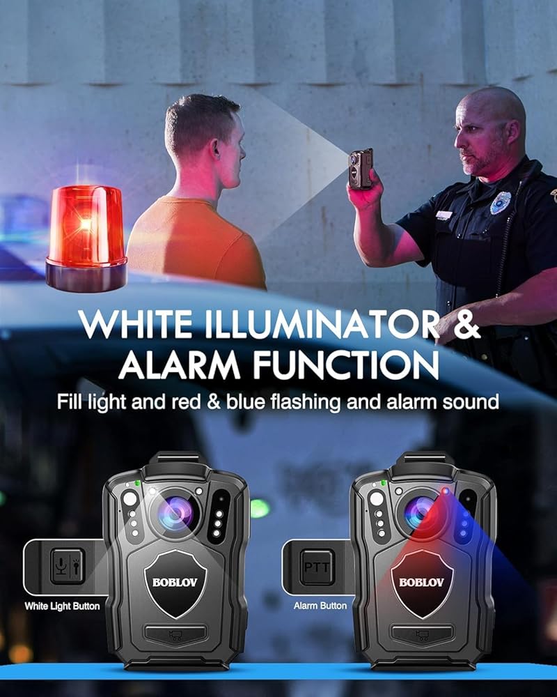 • 【كاميرا جسم الشرطة متعددة الوظائف وصغيرة الحجم】مجهزة بوظيفة الفيديو/الصوت/الصورة/التشغيل، تدعم هذه الكاميرا القابلة للارتداء تسجيل الحلقات والأضواء الوامضة باللونين الأحمر والأزرق وصوت التنبيه. تلبية الاحتياجات المحددة عند إنفاذ القانون والحصول على الأدلة.