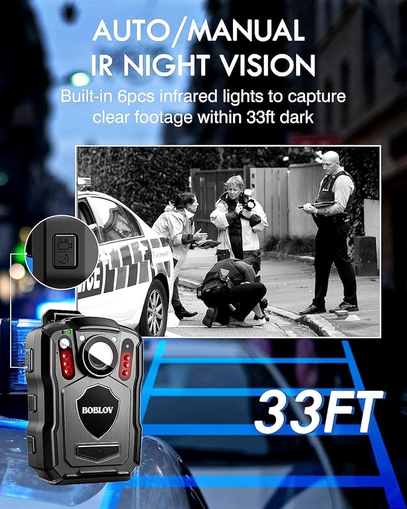 • 【كاميرا مثبتة على الجسم بدقة 1440 بكسل مع وظيفة الرؤية الليلية 】تتميز كاميرا الجسم M5 للشرطة بتسجيل فيديو بدقة 2560 × 1440 بكسل/30 إطارًا في الثانية والتقاط صور بدقة 48 ميجا بكسل، والحصول على تفاصيل أكثر وضوحًا للفيديو. 6 قطع من مصابيح الأشعة تحت الحمراء المدمجة مناسبة أيضًا للاستخدام الليلي. حارس أمن للعمل في الهواء الطلق.