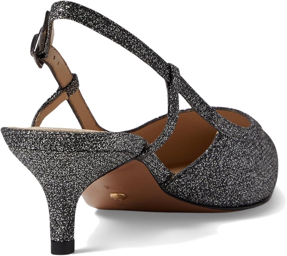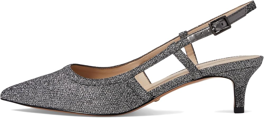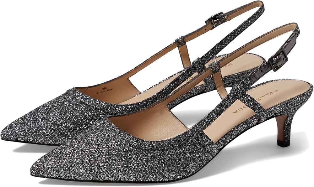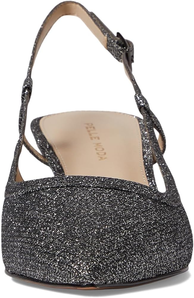 • Featuring a posted slingback pump silhouette with a small adjustable buckle on the side, the Pelle Moda Deena 2 Heels come with a padded footbed for added comfort. The side buckle closure also creates a stylish flair along with the metallic textile w