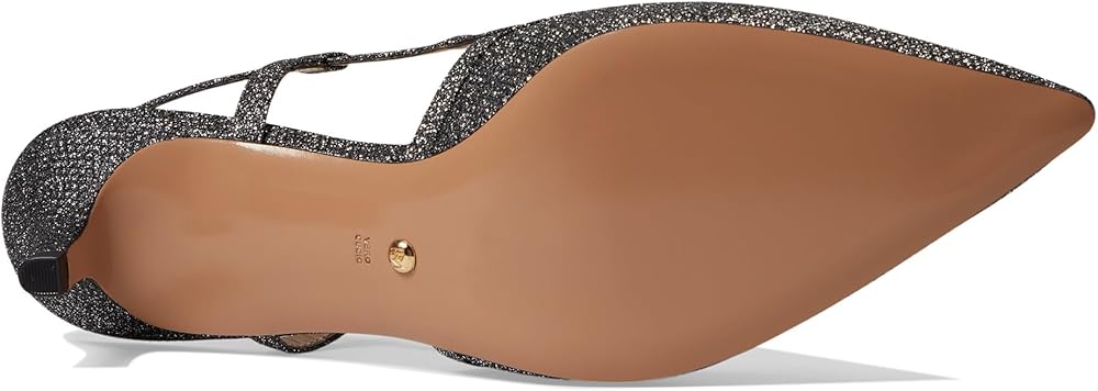 Featuring a posted slingback pump silhouette with a small adjustable buckle on the side, the Pelle Moda Deena 2 Heels come with a padded footbed for added comfort. The side buckle closure also creates a stylish flair along with the metallic textile which makes a statement wherever you go! Metallic textile upper. PU foam midsole. Slip-on style. Pointed toe design. Leather outsole.