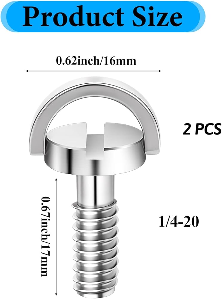 قطعتان من برغي حلقة على شكل حرف D من الفولاذ المقاوم للصدأ مقاس 1/4 بوصة - 20، برغي تثبيت كاميرا ثلاثي القوائم لبرغي تثبيت حامل الكاميرا، تركيب لوحة الفك السريع ومسامير التثبيت
