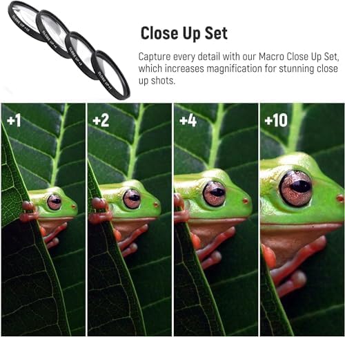 • EASY TO SETUP AND USE - Unlike other macro photography lens sets, this Close-up Lens Set provides an easy-to-use electronic accessory set for all of your cameras from 40.5MM-67MM. The lenses provide fantastic quality wherever you go and stay protected from dirt and dust within the free included nylon filter wallet, allowing you to transport your digital camera accessories without needing to carry around a camera cleaning set at all times!