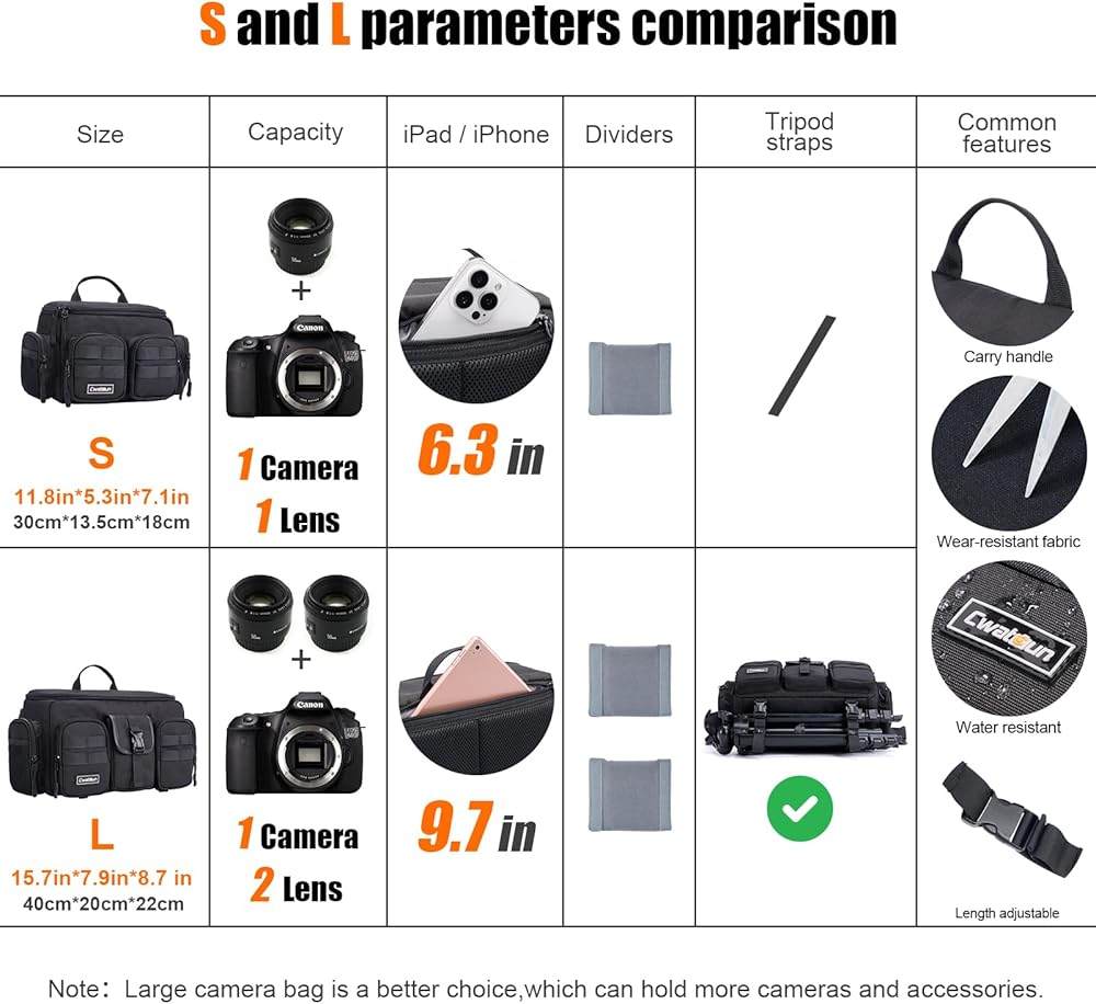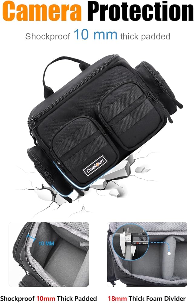 • ✅【عالية الجودة】حقائب الكاميرا هذه مصنوعة من البوليستر لمزيد من المتانة ومقاومة أفضل للتمزق ومقاومة للماء. يحتوي على سحاب لسهولة الانزلاق والتشغيل السلس. يمكنه حماية اللوازم التي تحتاجها بشكل أفضل، خاصة في البيئات الخارجية القاسية.