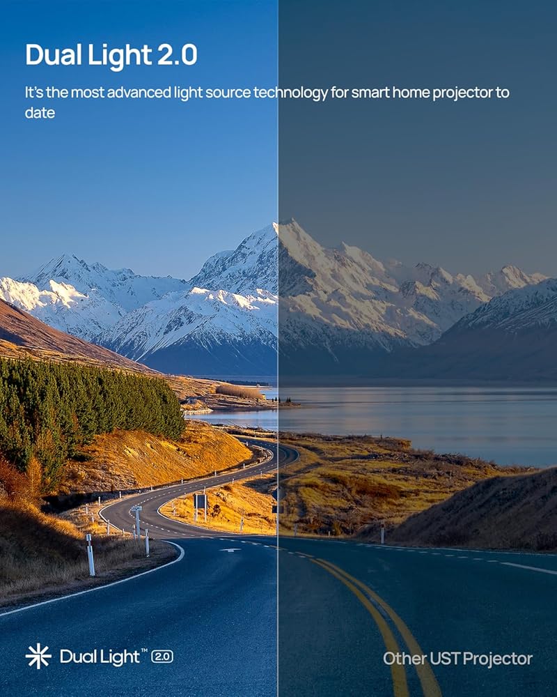 تجربة بصرية رائعة: استمتع بسطوع لا مثيل له بمعدل 2300 لومن ISO ونسبة تباين مذهلة تبلغ 1,000,000:1 للحصول على صور واضحة ونابضة بالحياة مدفوعة بتقنية Dual Light 2.0.