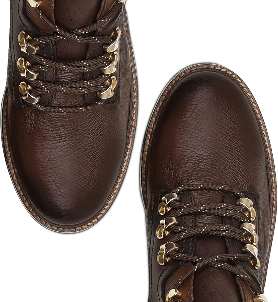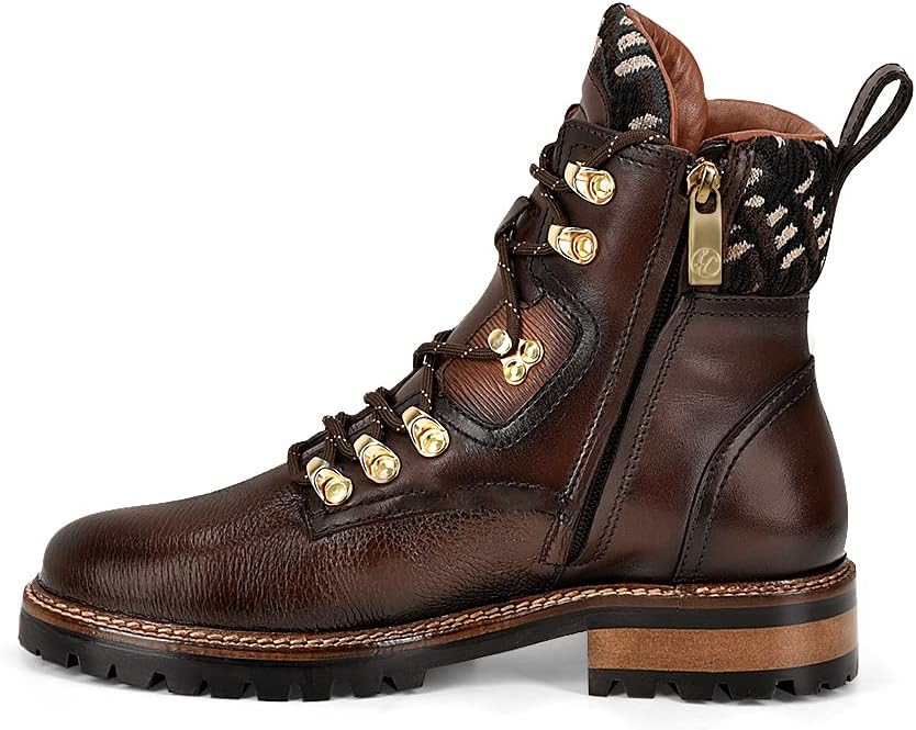 Boot for women in genuine deer leather and bovine leather. It presents bovine leather applications with contrasting texture and textile applications in the sides, in the back and over the tongue. With pull strap in the back, inner zipper and laces attached with metallic applications. With leather sole with TPU injection.