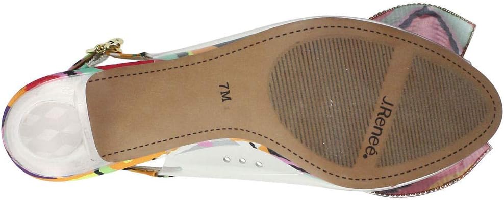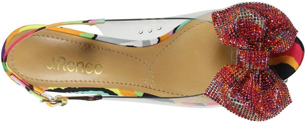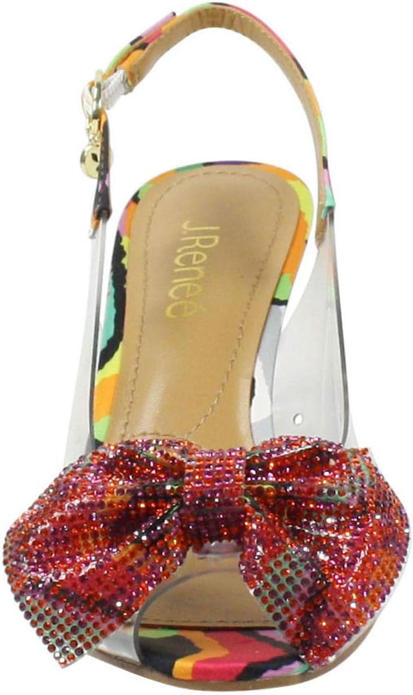 Add some eye-catching glamour to your outfit in the J. Renee Ramillo sling-back heel. Adjustable buckle closure at ankle. Memory foam cushioning. Peep toe. Crystal covered bow on vamp. Synthetic upper and lining. Leather insole. Textile outsole.