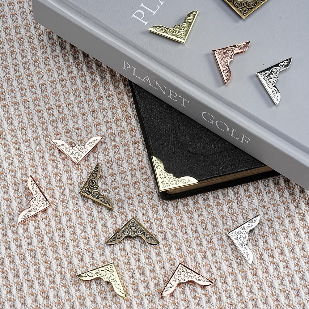 • Wide Applications: Metal Decorative Vintage Corner Guards not only protect the corners of books from scratches, they are also very nice decorations for photo books, scrapbooks, albums, menus, folders, wallets, card making and DIY crafts, when you mount these corner guards on books or other accessories, they will become more beautiful and atmospheric pleasing to the eye.