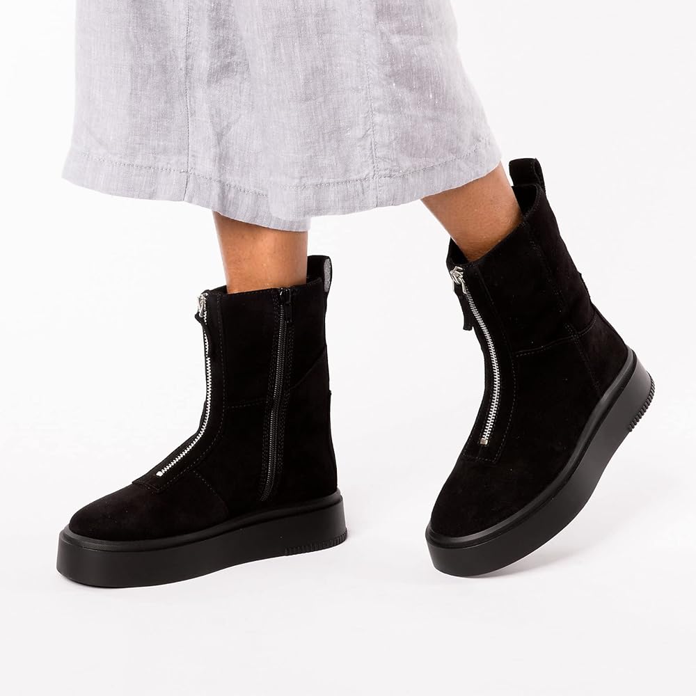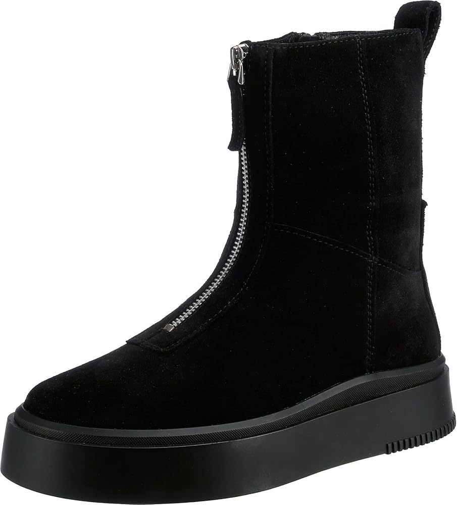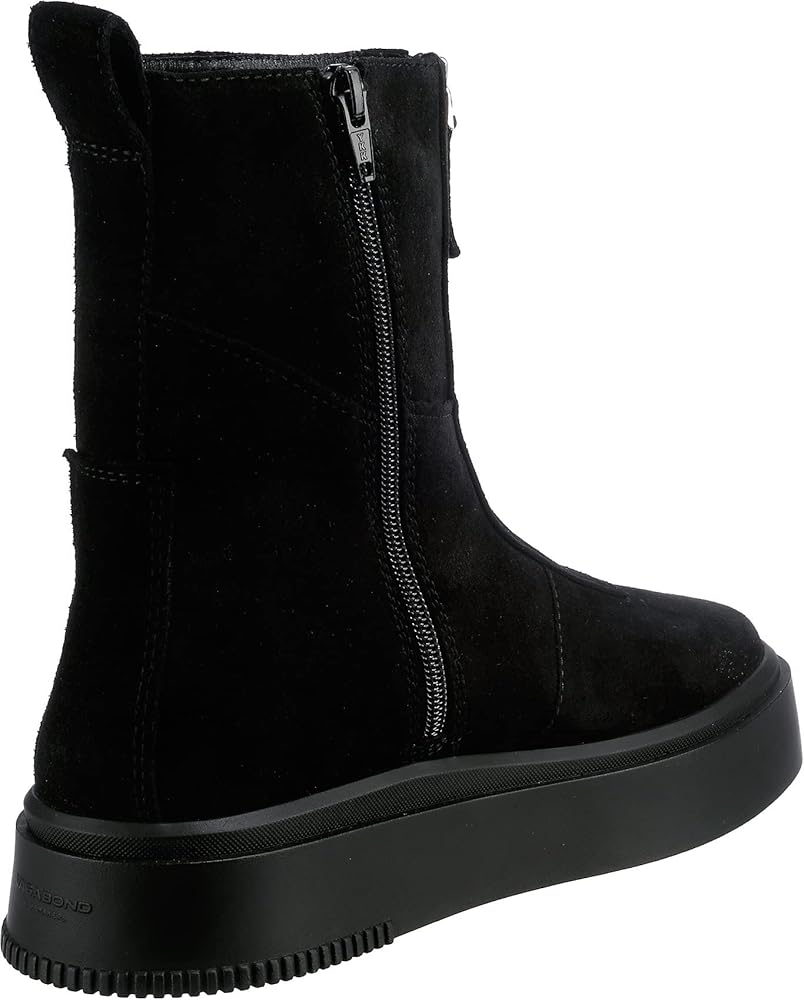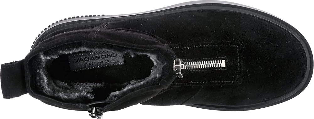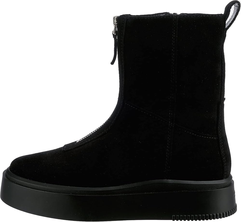 Navigate the streets in style and comfort during the chilly days and nights donning the Vagabond Shoemakers Stacy Suede Warm Lining Zip Boots. Leather upper. Breathable leather and textile lining and insole. Zippered front closure. Pull tab on the back for easy on and off. Rounded toe. Chunky flatform man-made outsole.