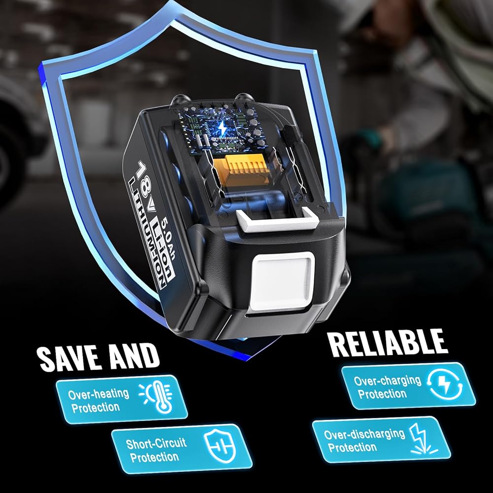 【نموذج قابل للتطبيق 】متوافق مع أداة الطاقة اللاسلكية 18 فولت LXT BL1860، BL1860B، BL1850، BL1850B، BL1840، BL1840B، BL1830، BL1830B، BL1815، BL1825، BL1835، BL1845، dmr104w، dtw285 ض، RMB100، BMR107، LXRM02، LXRM03، BMR103، BMR102 ، بي إم آر 104