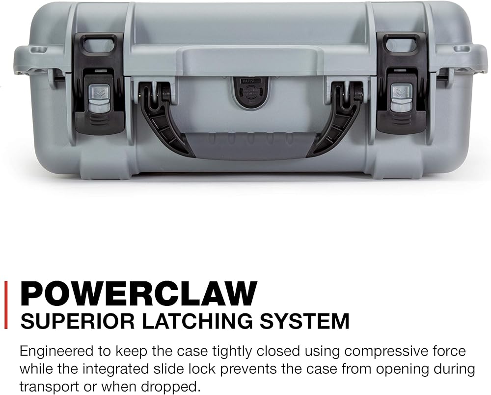 • two power claw (patented) triple action latches molded in super-tough nylon keep the case securely closed using compressive force, lockable with optional tsa padlocks