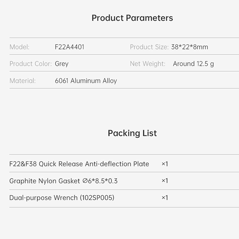 • [التثبيت والإزالة، في خطوة واحدة] يتيح التوافق العالمي مع أنظمة الإصدار السريع F38F22 الاتصال السريع بالأجهزة بدون براغي. مما يسمح بالتبديل السلس بين نظامين