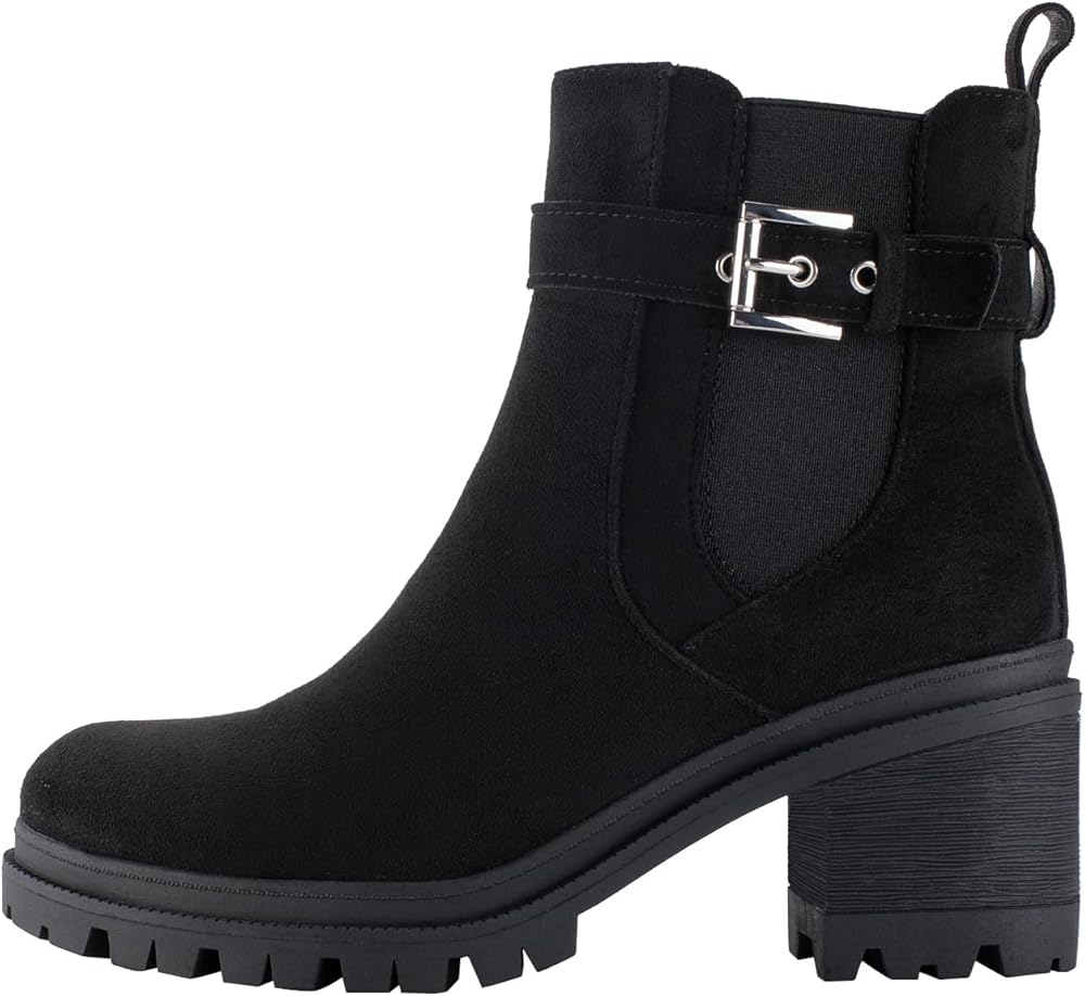 أحذية أنيقة: أحذية تشيلسي كلاسيكية، الخريف والشتاء، كعب عريض، نعل سميك، مقدمة دائرية، مع إبزيم
