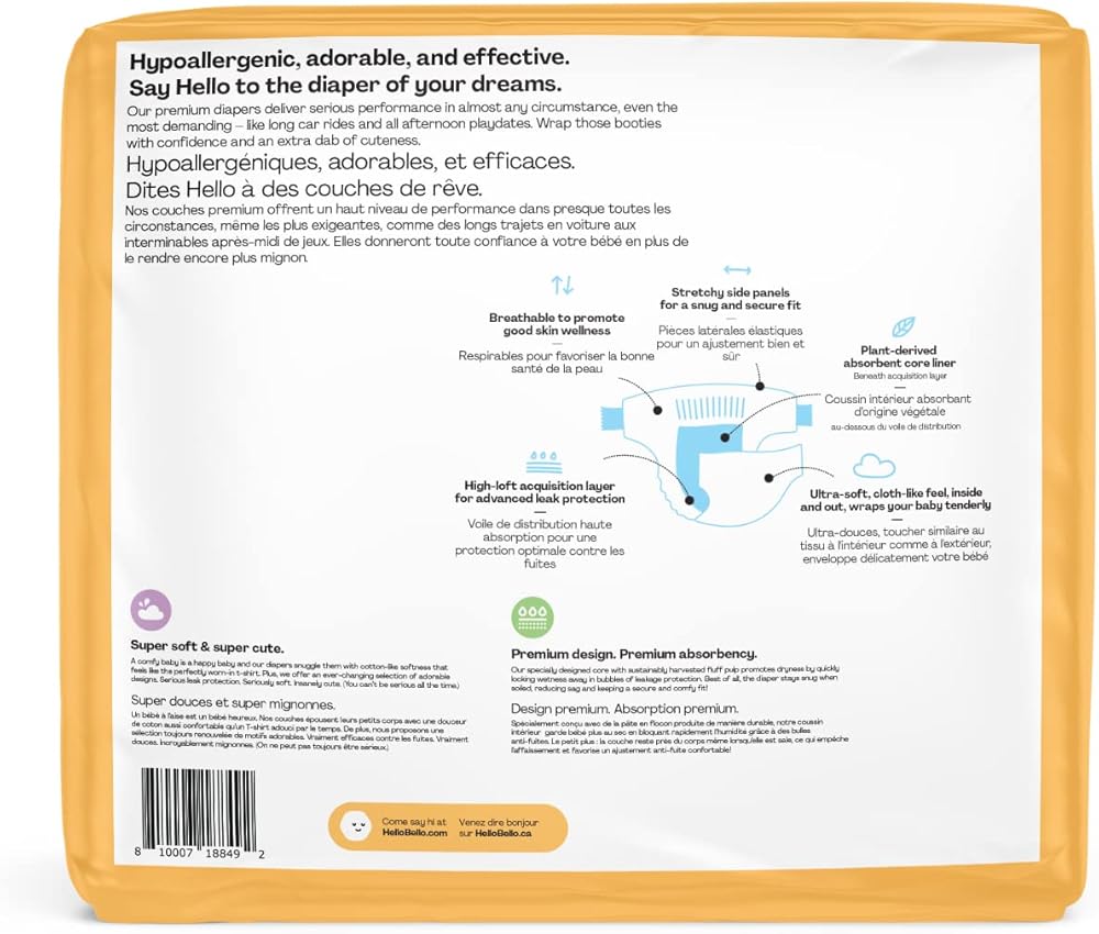 • HELLO BELLO PREMIUM DIAPERS: Doody-catchers; Crap-sacks; Tinkle-poopers; Whatever you want to call them, our plant-based, super soft and absorbant disposable diapers are a modern convenience you don't want to live without