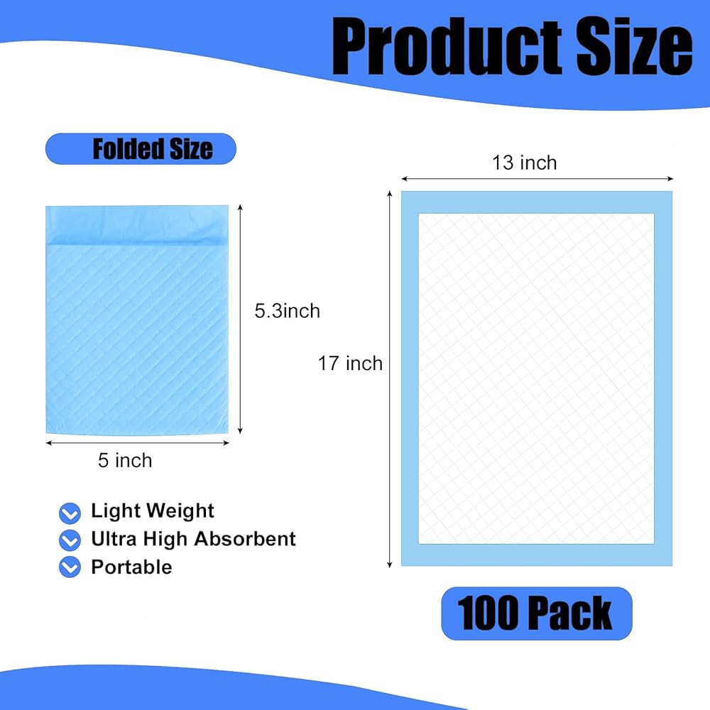 وسادات تغيير الحفاضات للاستعمال مرة واحدة: تحتوي هذه المجموعة على 100 وسادة تغيير حفاضات للأطفال للاستعمال مرة واحدة، مقاس كل منها 43.18 سم × 33.02 سم. هذه الوسادات الداخلية المطوية مسبقًا من أجل الحجم الصغير، عملية وسهلة الحمل، ويمكن وضعها بسهولة في حقيبتك