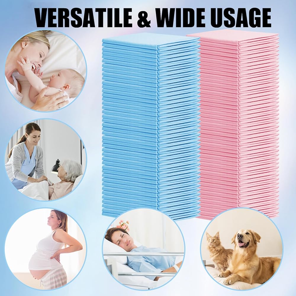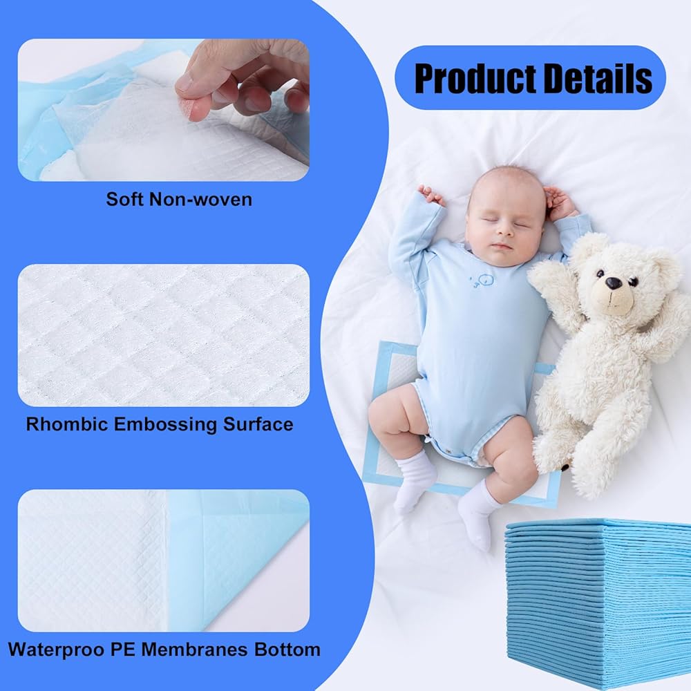 100 عبوة من وسادات تغيير الحفاضات للاستعمال مرة واحدة، مقاس 17 × 13 بوصة، وسادات سفلية للاستعمال مرة واحدة للأطفال، وسادات سرير فائقة الامتصاص للاستعمال مرة واحدة، وسادة تغيير حفاضات مقاومة للماء، وسادات سفلية قابلة للتنفس، حصيرة حماية لطاولة السرير