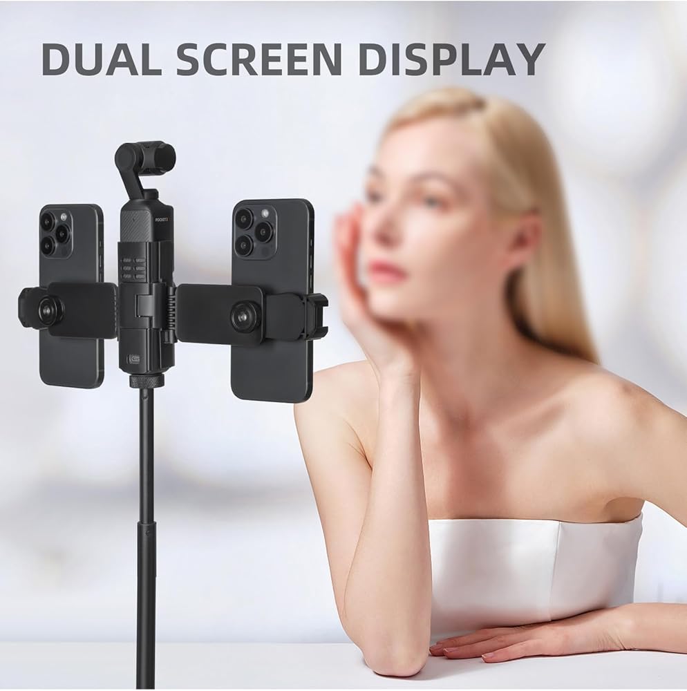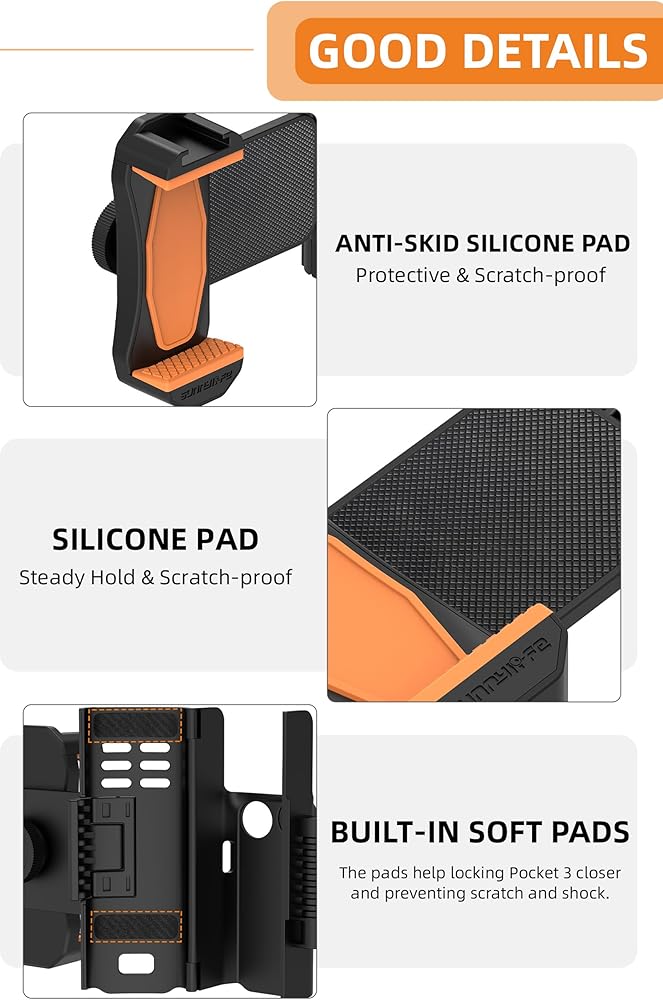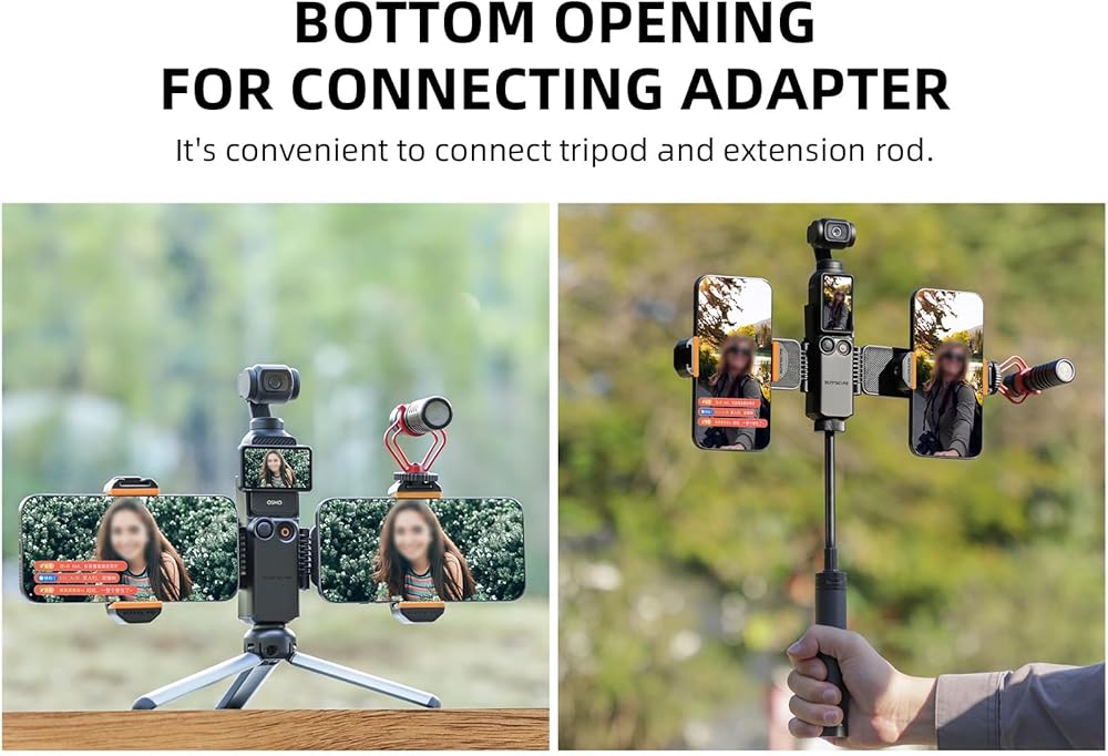 Anti-slip design:There are soft rubber inside of the brackets for the smartphone and OSMO Pocket 3, which are more stable and can protect your smartphone and OSMO Pocket from falling down and scratching