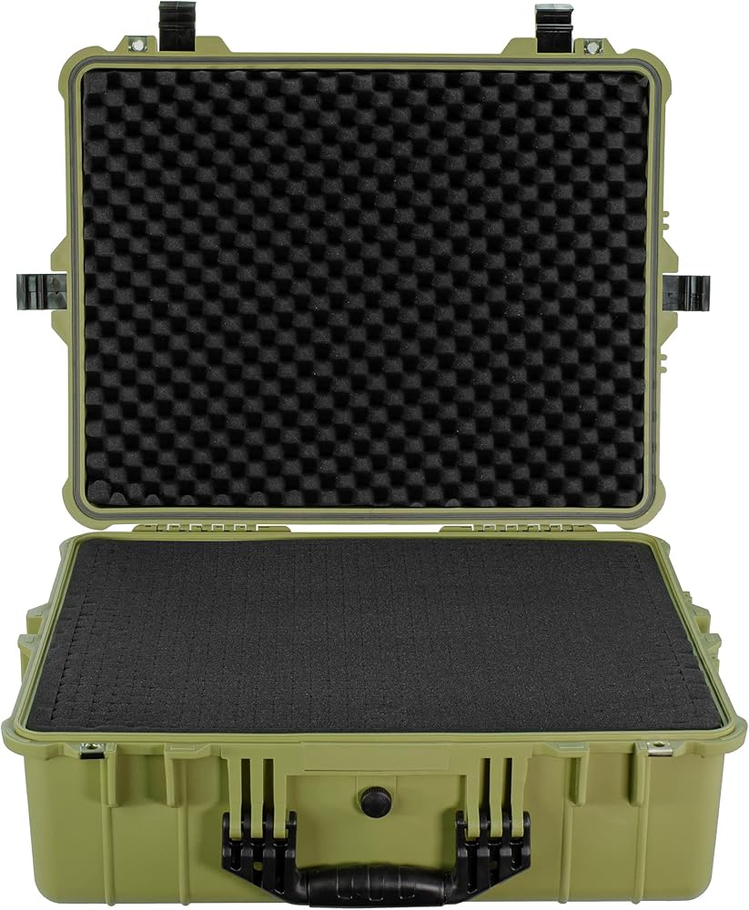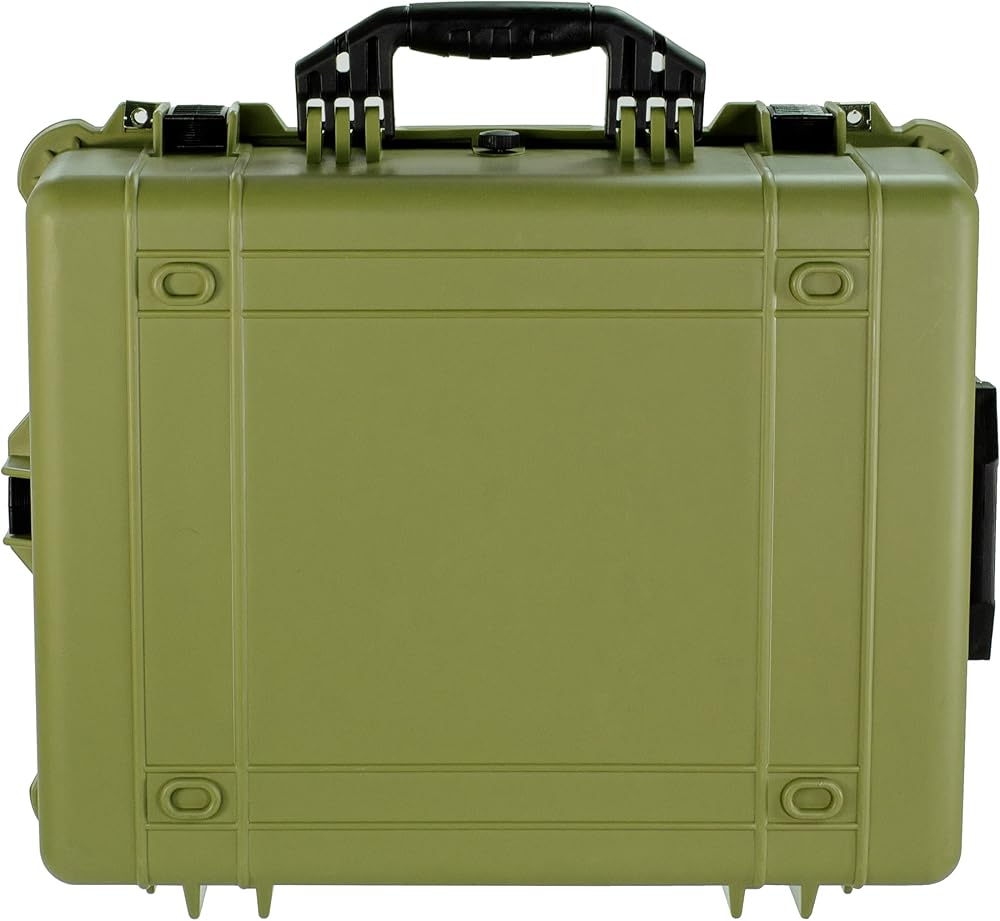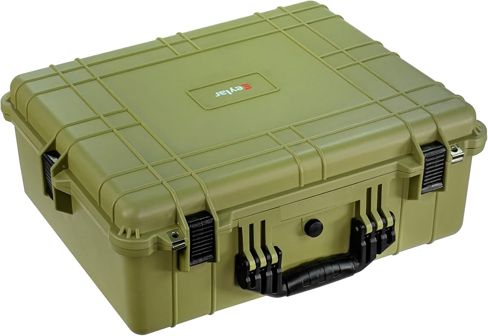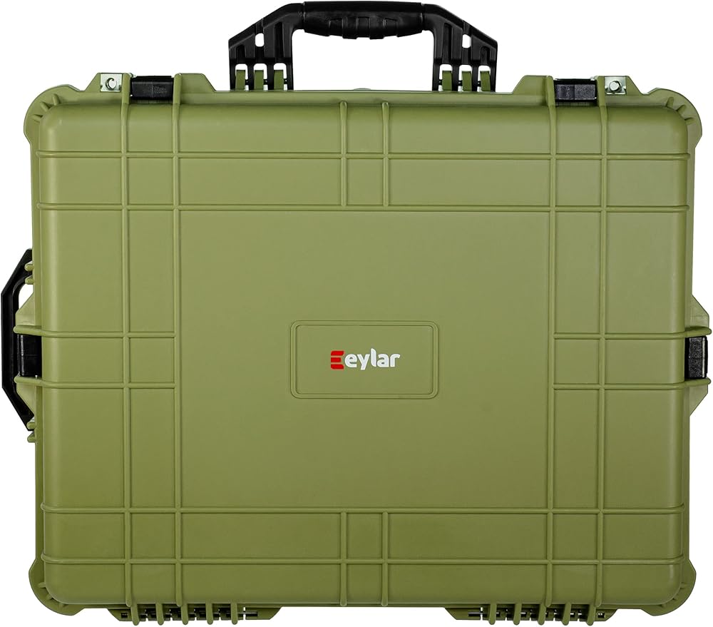 The Eylar portable protective hard camera and gear case is designed to be convenient and customizable. A tough exterior creates protection from impact along with a strong seal to keep the box water resistant. On the front is an air pressure equalizer knob to compensate for changes in pressure if travelling. Pluck and pull foam allows for custom compartmentalization so tools can be stored neatly and securely. Clamps on the front and sides to securely close the box with crushproof handles for easy carrying. Uniform grooves to create stacks if needed. Outer: 24.25" x 19.43" x 9.65" Inner: 21.43" x 16.5" x 7.87" Water resistant Shock resistant Pressure equalization valve Multiple layers of pluck and pull foam Black Stackable design with Lockable fittings to meet TSA requirements. 17.6 LBS.