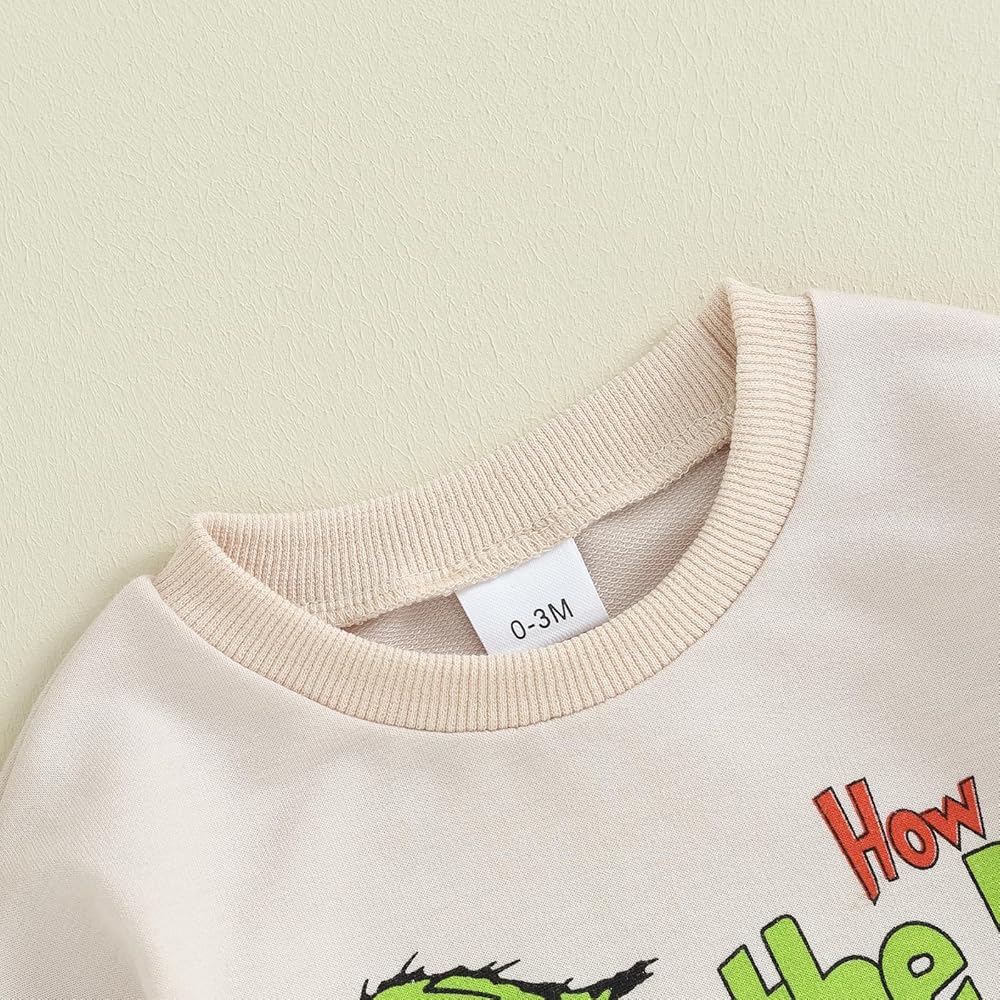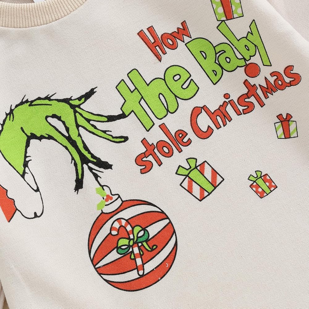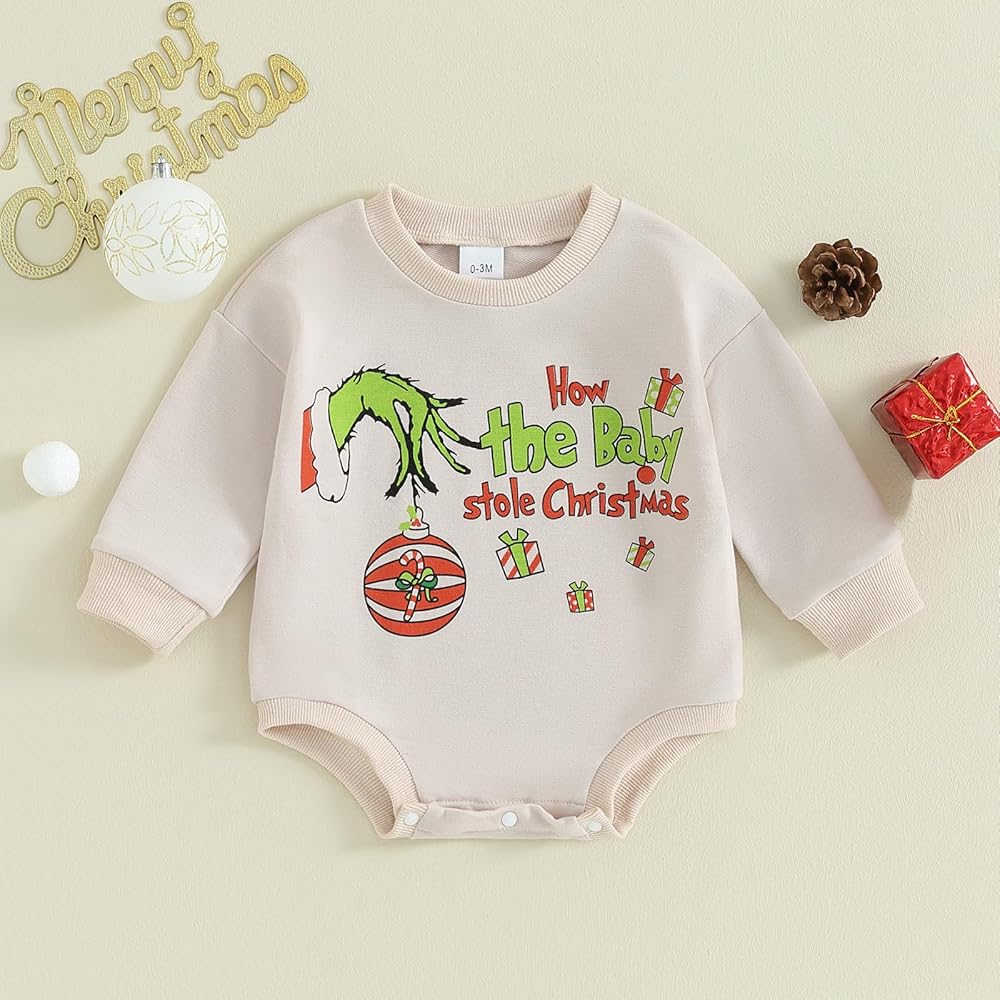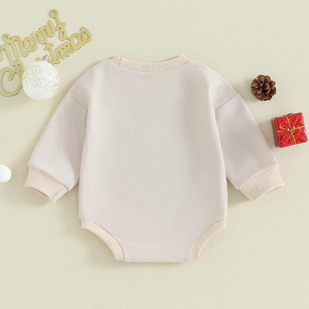 Baby Christmas Romper Long Sleeve Crew Neck Cartoon Print/Bowtie Bodysuit Newborn Costume