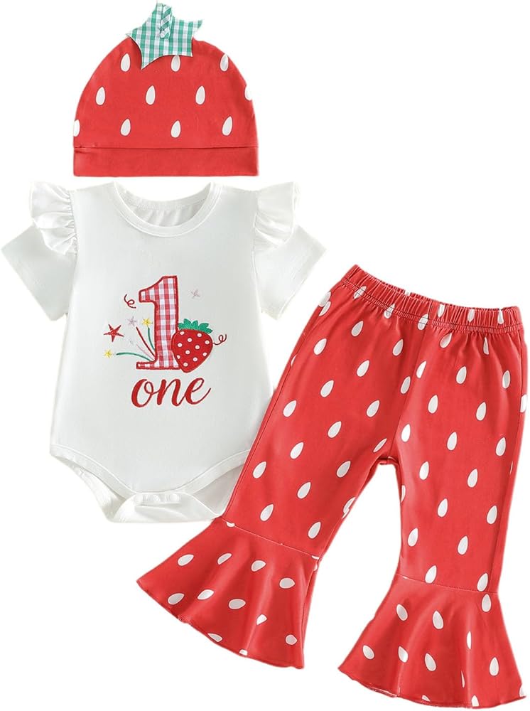 🍓🎁🍓【ما تحصل عليه】: سويت شيرت رومبير بأكمام طويلة للفتيات الصغيرات قطعة واحدة قطعة علوية للخريف*1 + سروال سفلي على شكل جرس الفراولة للفتيات الصغيرات*1. ملابس عيد ميلاد للفتيات الصغيرات بعمر سنة واحدة، ملابس الفراولة لطفلة عصرية جدًا وتصميم 2024 أنيق، لطيف جدًا.