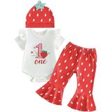 🍓🎁🍓【تصميم 2024】: زي فتاة عيد الميلاد الأول، زي فتاة صغيرة على شكل فراولة، سويت شيرت بأكمام طويلة ورقبة دائرية، تطريز حرف واحد ونمط فراولة، إغلاق بكبسولة سفلية، يتوافق مع مجموعة كاملة من السراويل المتوهجة بطباعة الفراولة ومجموعة عصابة الرأس لملابس الخريف.