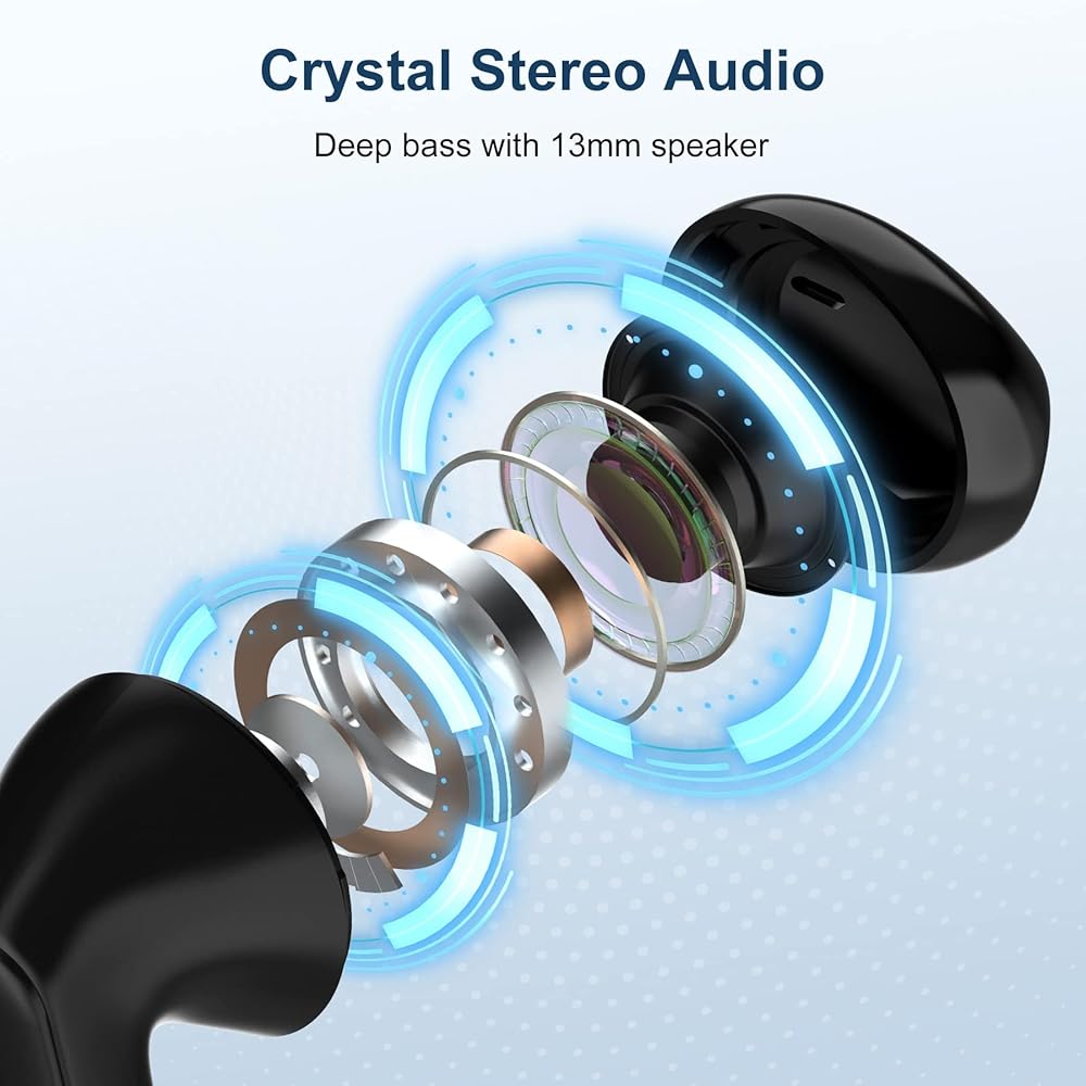 سماعات أذن لاسلكية بلاك فيو، سماعات رأس بلوتوث، سماعات أذن AirBuds 7 بلوتوث 5.3 سماعات إلغاء الضوضاء العميقة، IP7 مقاومة للماء، شاشة LED وقت تشغيل 40 ساعة للكمبيوتر المحمول والهاتف والتمارين الرياضية باللون الأسود