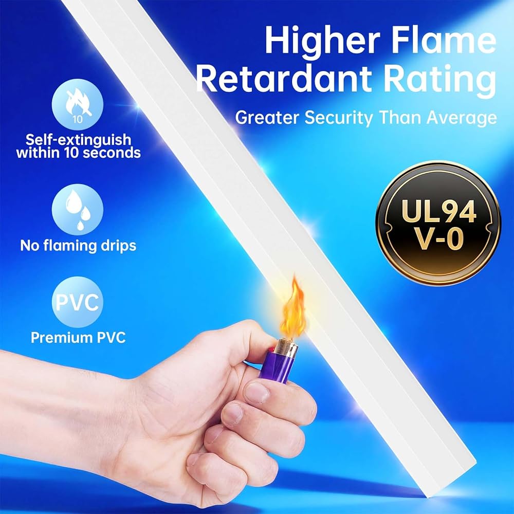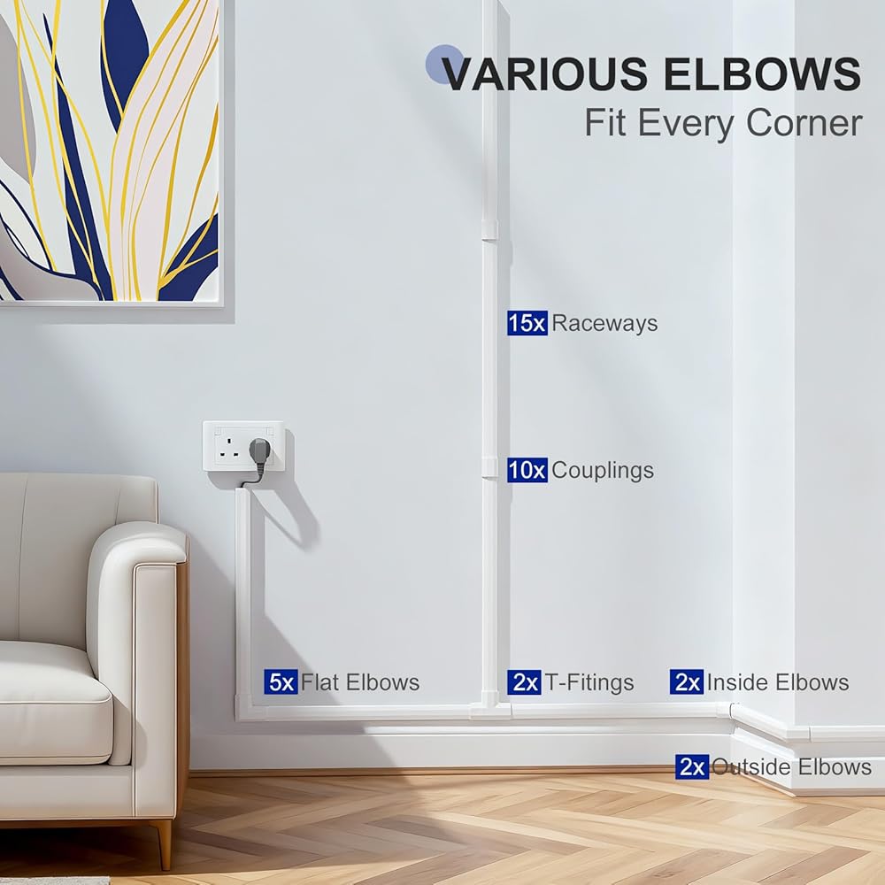 تلبي احتياجات معظم تنظيم الكابلات المنزلية: تُعد أغطية الأسلاك متوسطة الحجم مثالية لإخفاء 2-3 كابلات تلفزيون/صوت/شبكة، مثل كابلات HDMI وكابلات Cat6 Ethernet والكابلات الضوئية وكابلات USB. تحتوي مجموعة أغطية الأسلاك ذات التصميم السهل التركيب من Delamu على 6 مسارات للكابلات، طول كل منها 15.7 بوصة. يبلغ طول مخفي الكابل 94.5 بوصة. يوجد 10 موصلات (لتناسب كل زاوية)، و12 مسمارًا و12 مرساة، وشريط لاصق واحد.