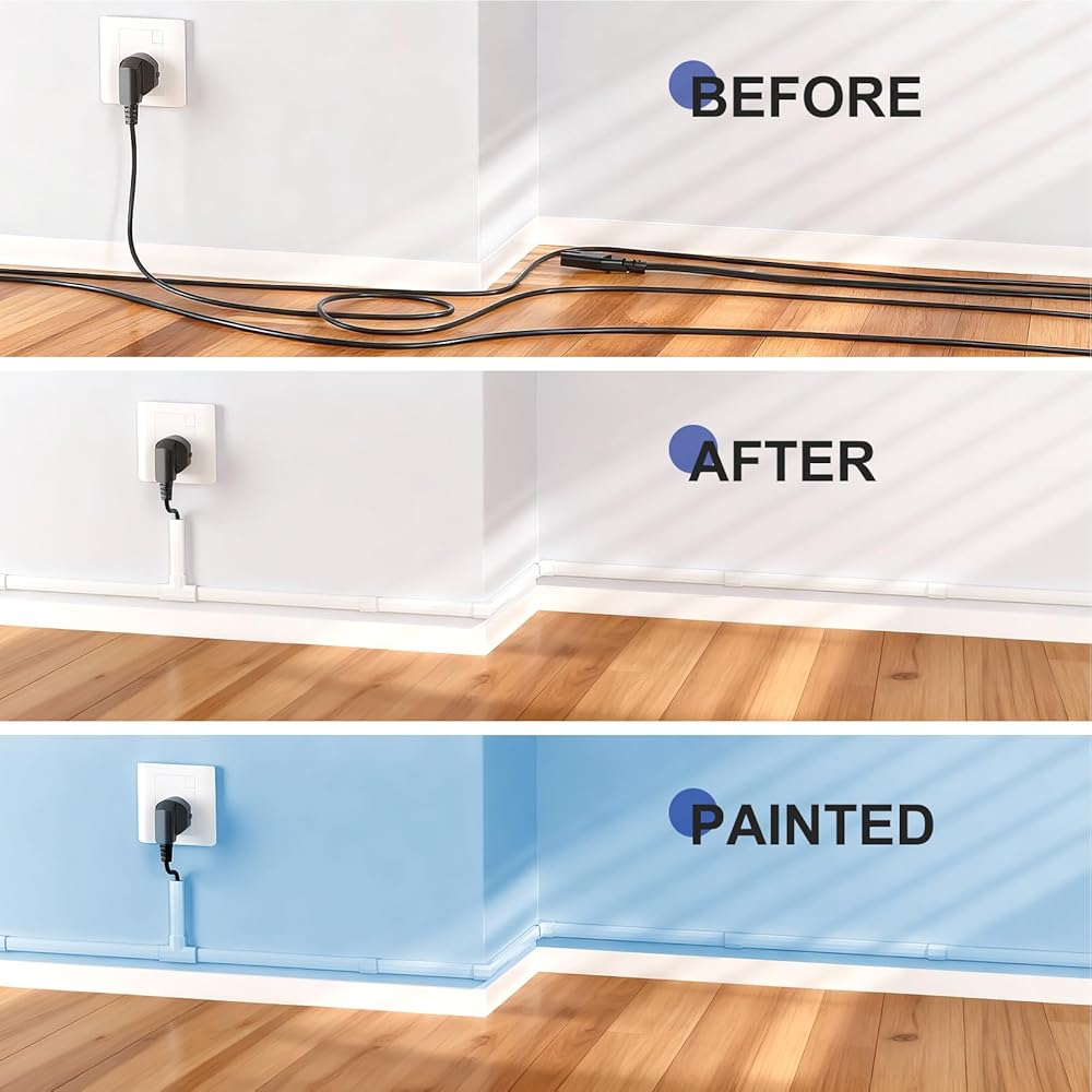 قابل للطلاء والقطع: لقد جعلنا مخفي الكابل نحيفًا وأنيقًا بحيث يندمج بشكل مثالي مع إعدادات منزلك، يمكنك طلاء مخفي السلك بأي لون تحتاجه ليتوافق مع جدارك وقصه إلى أي طول ترغب فيه