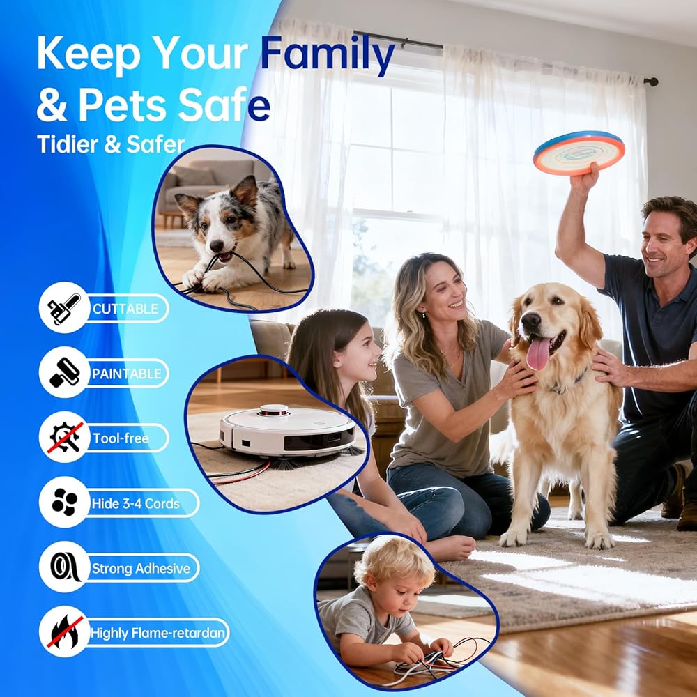 منزل أكثر أمانًا ومرتبًا للأطفال والحيوانات الأليفة: قم بإخفاء الكابلات باستخدام Delamu Attach & Snap cord Hider لحماية حيواناتك الأليفة وأطفالك من الحبال. يقوم تصميم Attach & Snap بإغلاق أغطية الكابلات بإحكام بمجرد إغلاقها، مما يحمي الأطفال والحيوانات الأليفة من لمس الأسلاك ومضغها. تضمن إدارة كابلات Delamu أن جميع المساحات المزودة بالإلكترونيات آمنة للأطفال والحيوانات الأليفة