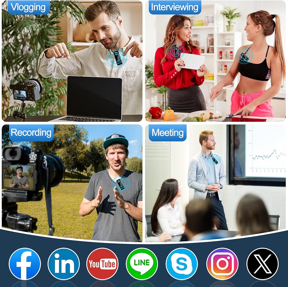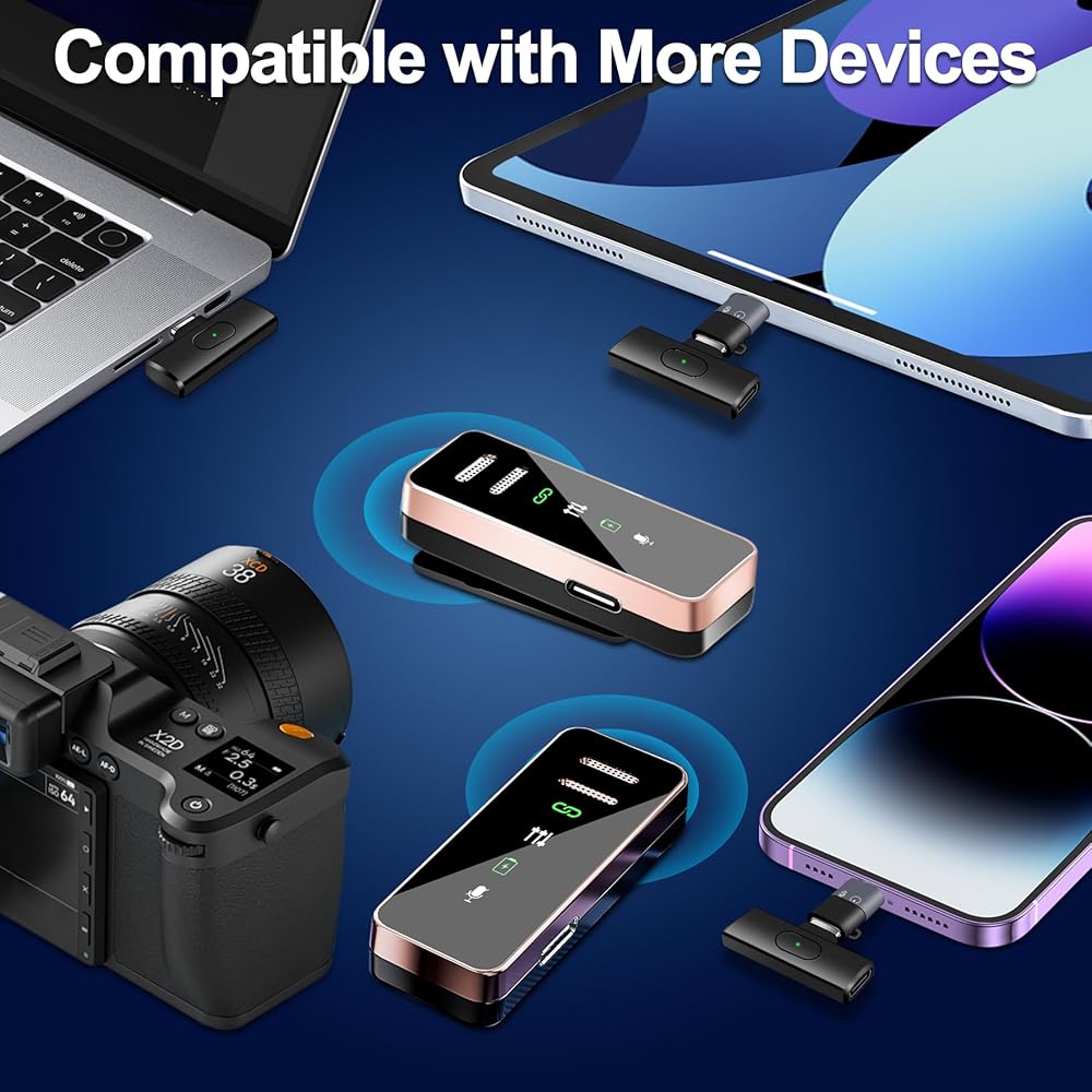 𝐏𝐋𝐔𝐆 𝐀𝐍𝐃 𝐏𝐋𝐀𝐘, 𝐄𝐀𝐒𝐘 𝐓𝐎 𝐔𝐒𝐄: لا يتطلب بلوتوث أو تطبيق، يتم الاقتران في ثانية واحدة فقط. عبوتان من الميكروفونات الصغيرة، مما يعني أنه يمكن لشخصين المشاركة في تسجيل الفيديو معًا، مما يوفر الكفاءة والراحة لعامل الفريق. يحررك هذا الميكروفون اللاسلكي الصغير لجهاز iPhone من قيود الكابلات، مما يتيح التصوير الديناميكي والتسجيل المحمول وإنتاج الفيديو القصير في بيئات مختلفة. ملاحظة: قد تتطلب بعض أجهزة Android تشغيل وظيفة OTG في الإعدادات
