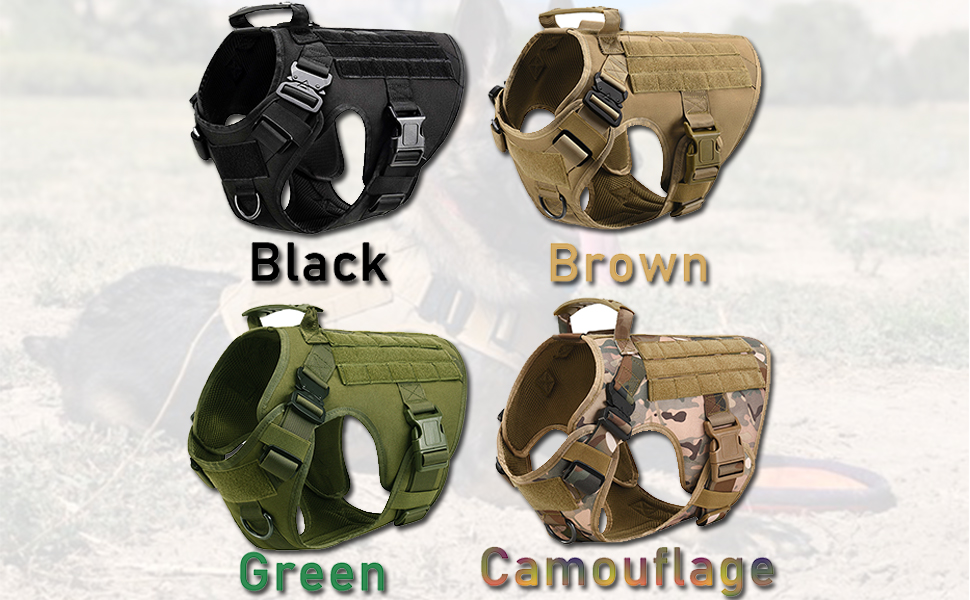 سترة تسخير الكلاب التكتيكية مع سحب المقبض، سترة MOLLE للكلاب العاملة العسكرية مع ألواح حلقية معدنية، حزام تدريب للمشي لمسافات طويلة والصيد مع مقود بنجي مجاني للكلاب (أسود M)