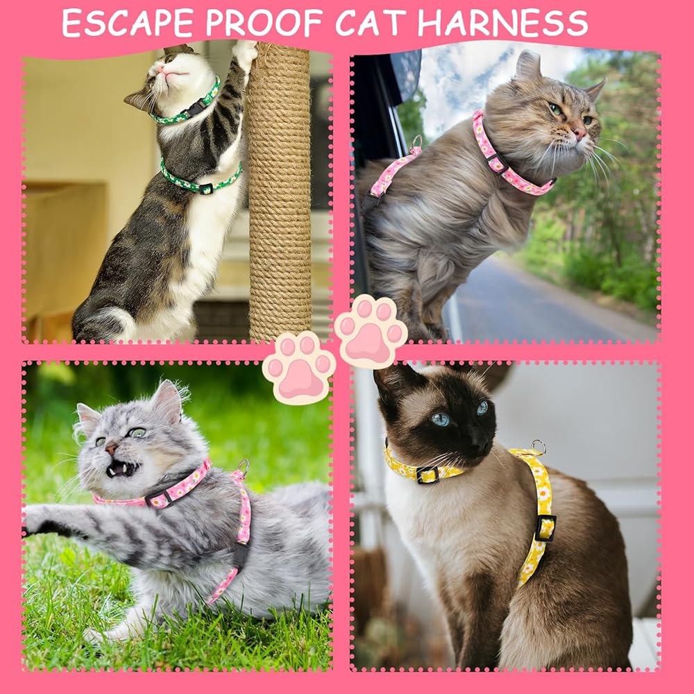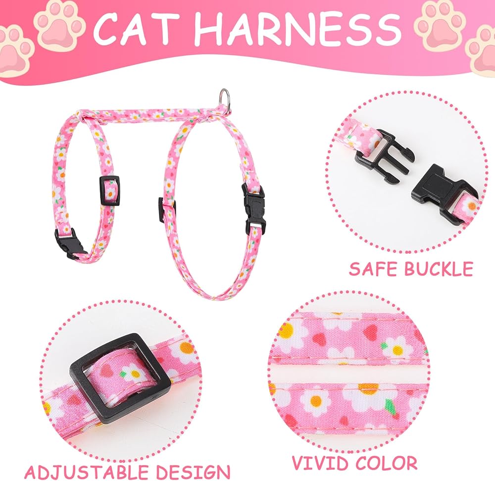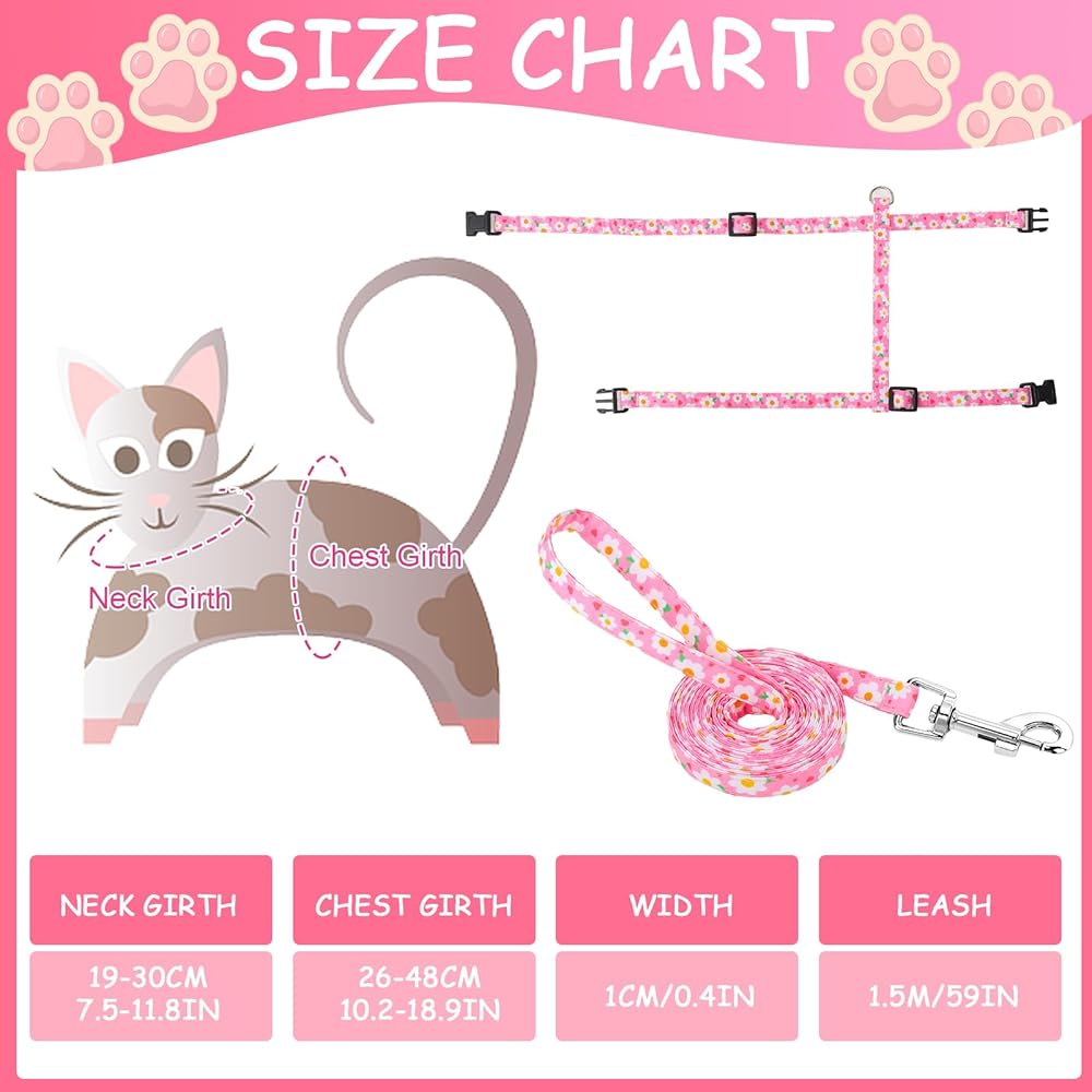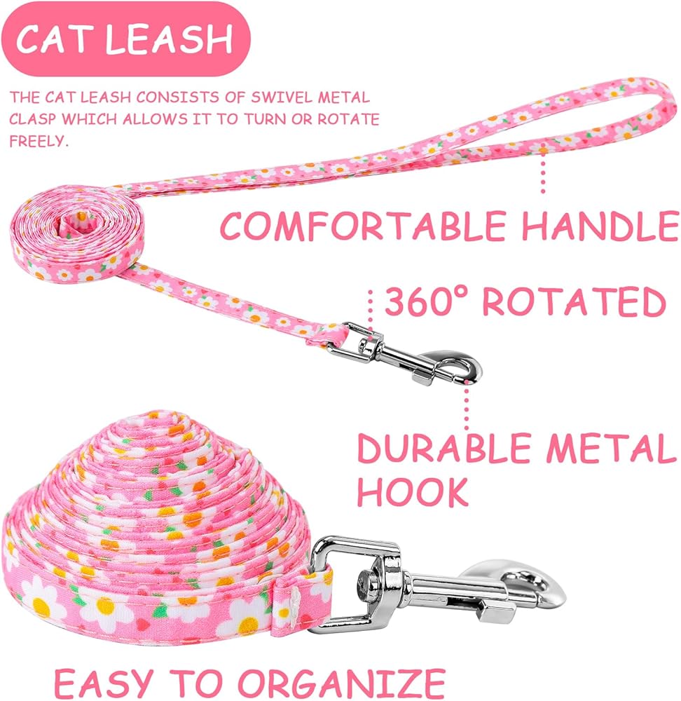 مجموعة مكونة من 3 قطع من حزام ومقود القطط، حزام للقطط قابل للتعديل على شكل زهور ومضاد للهروب، حزام لطيف للقطط الصغيرة والمتوسطة